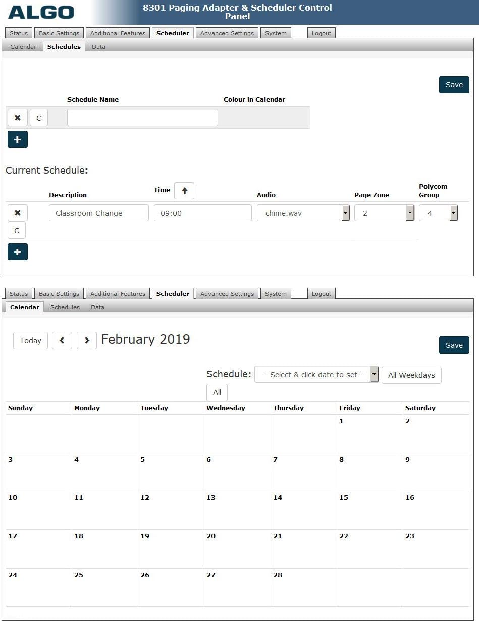- Easy and intuitive web interface to configure scheduled announcements, tones, bells, music, etc.