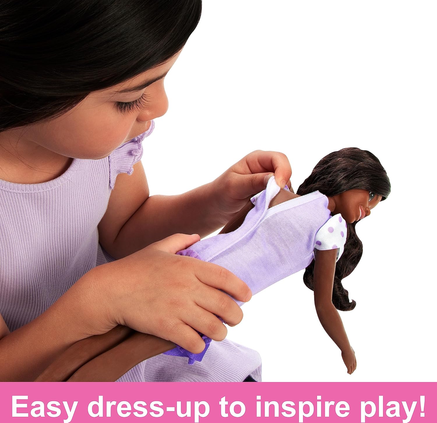 Introducing My First Barbie, a collection designed for preschoolers! This sweet line features larger dolls that are easy-to-dress and have poseable, soft-touch bodies. From friendship to fashion, kids can create countless stories with these adorable dolls! Each sold separately, subject to availability. Barbie dolls cannot stand alone. Colors and decorations may vary.