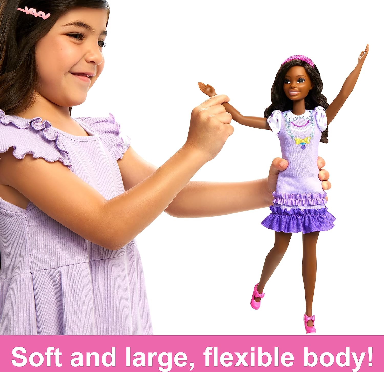 - This Barbie “Brooklyn” Roberts 13.5-inch doll is inspired by her character in the My First Barbie YouTube series. A soft torso and limbs make her easy to handle, carry around and dress.