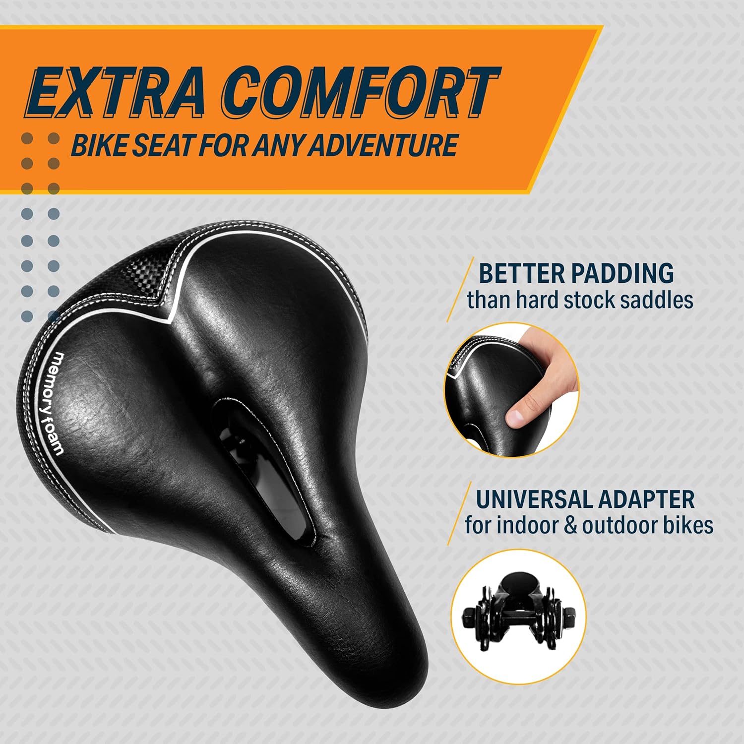 - The universal mount ensures that this bike saddle for both men and women will fit any city, MTB mountain, commuter, ebike, indoor stationary, or road bike. With standard rails, change out your old seat cushion for an upgraded, comfortable ride.