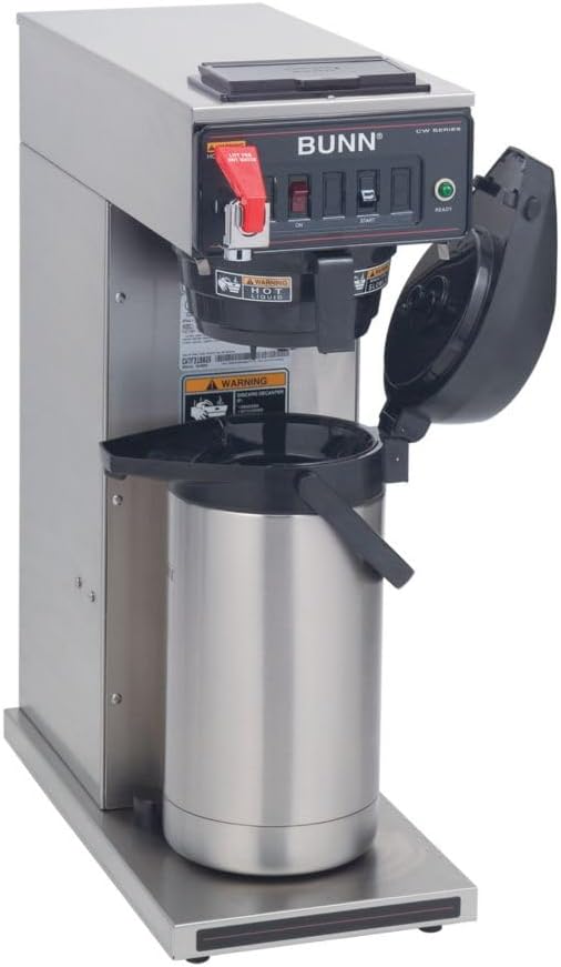 The BUNN CWTF15-APS is a compact, pourover coffee brewer that delivers 3.8 to 7.5 gallons of fresh coffee per hour. Designed to brew directly into 1.9–3 liter airpots (sold separately), it keeps coffee hot and ready to serve for hours. Features include a digital timer, a hot water faucet, and a SplashGard® funnel for safety. At just 9 inches wide, it saves counter space and requires no plumbing.