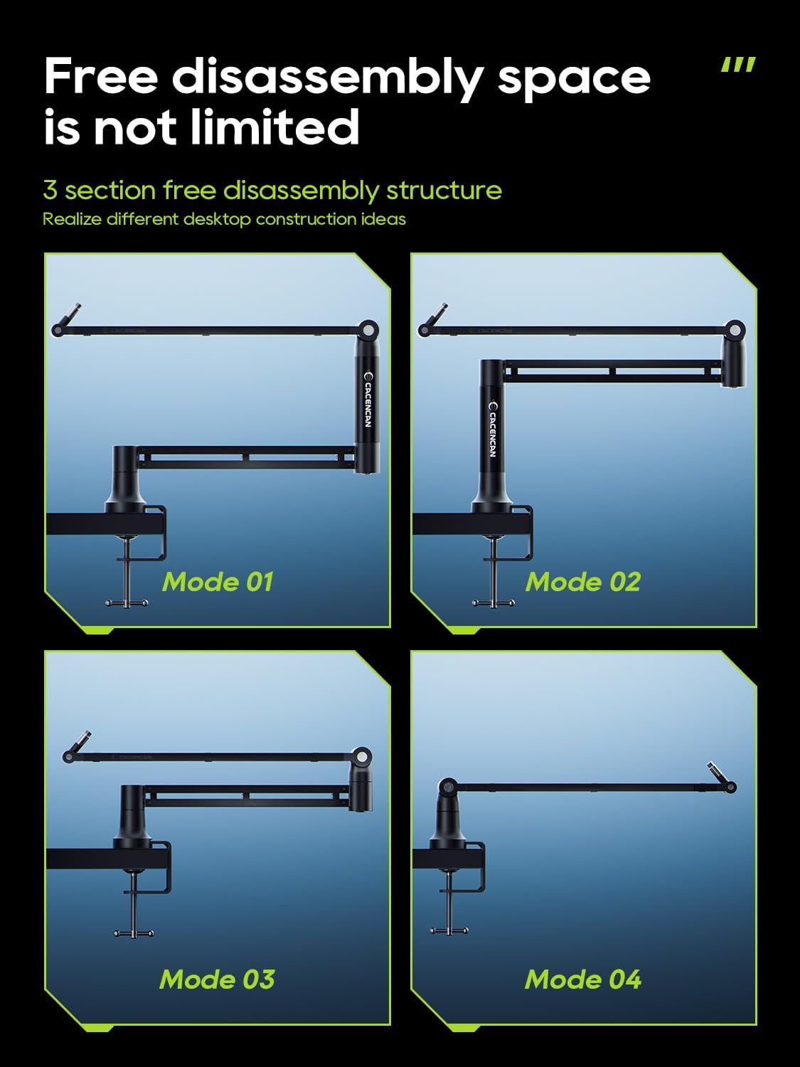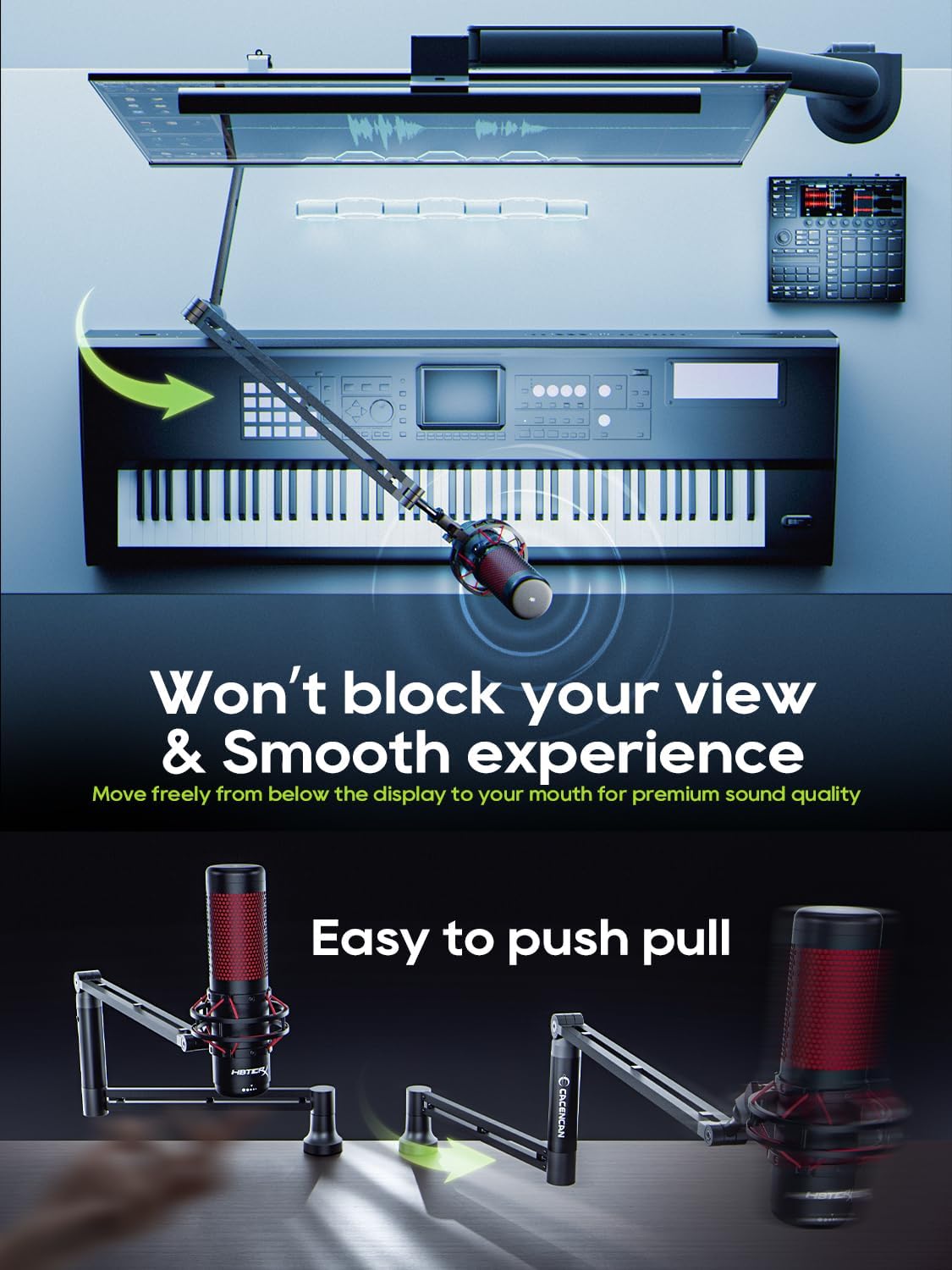 - Extra Length & Height: Equipped with a 9.8 inch (25 cm) extension rod, it can adapt to wider desks or span across monitors, ensuring that the microphone and boom arm do not obstruct your view, allowing you to adjust the microphone to the perfect position with a 360° adjustable arm that rotates to your needs.