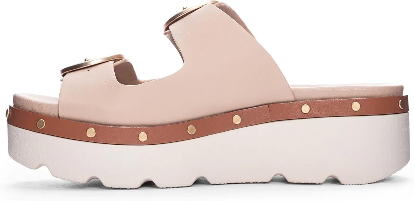 Step into effortless style with the Chinese Laundry Surfs Up wedge sandal. Designed with dual straps and oversized buckles, these chic slides feature a cushioned footbed for lasting comfort. The 2.5" wedge heel with 1.5" platform adds height while maintaining stability, making them perfect for both city outings and beach days. A versatile sandal that blends casual comfort with modern flair.