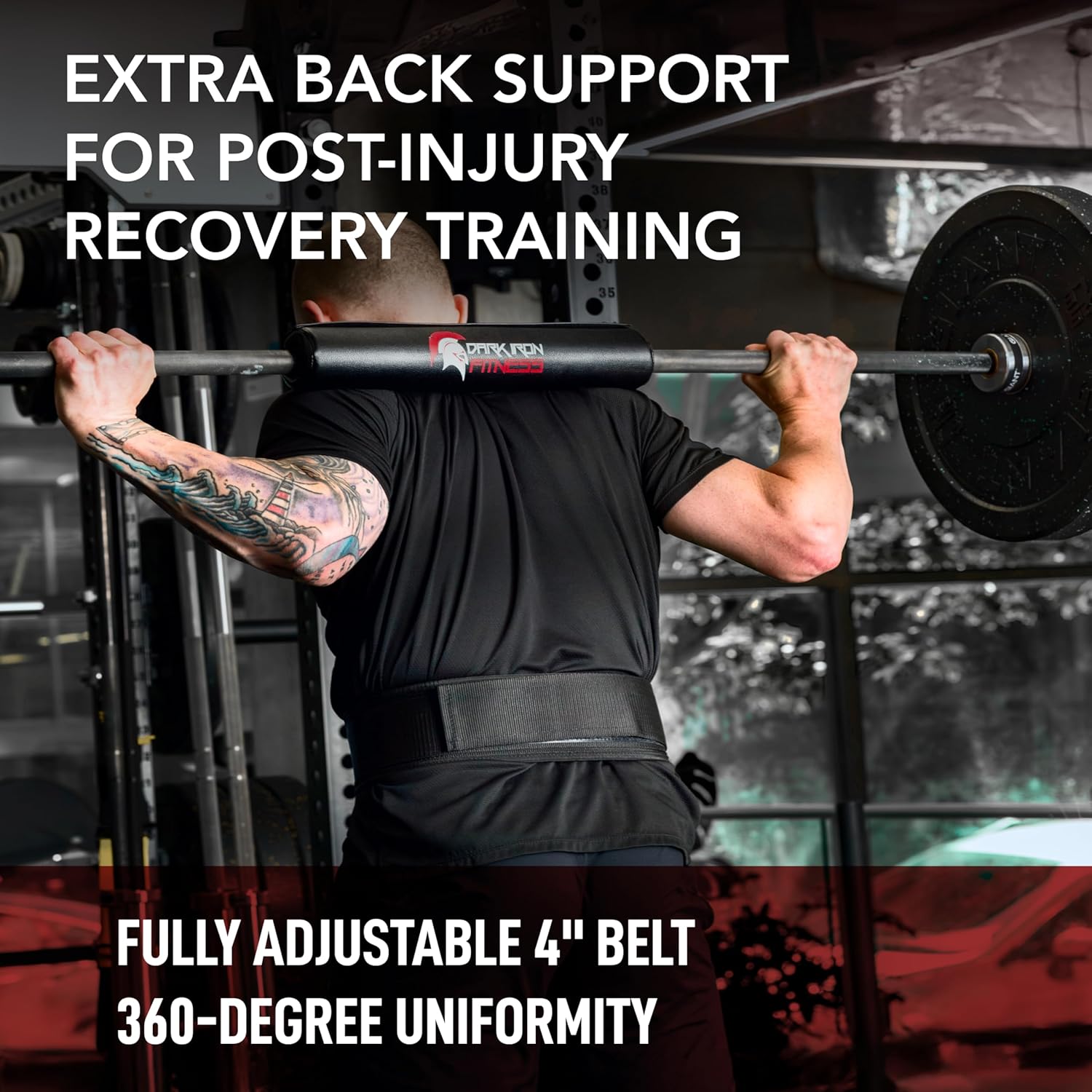 Experience superior stability and comfort with the Dark Iron Fitness Self-Locking Weight Lifting Belt, engineered to support your core and lower back through heavy lifting. Made from heavy-duty nylon with thick padding, it delivers flexible, non-staining comfort while reducing rubbing during intense workouts. The 4" adjustable belt features a durable metal roller buckle and a secure self-locking mechanism for quick tightening between sets. Perfect for powerlifting, bodybuilding, squats, deadlifts, CrossFit, and general strength training, this belt helps improve form and protect your spine. Ideal for men and women, it offers reliable performance whether you're training hard, rehabbing, or lifting heavy at home.