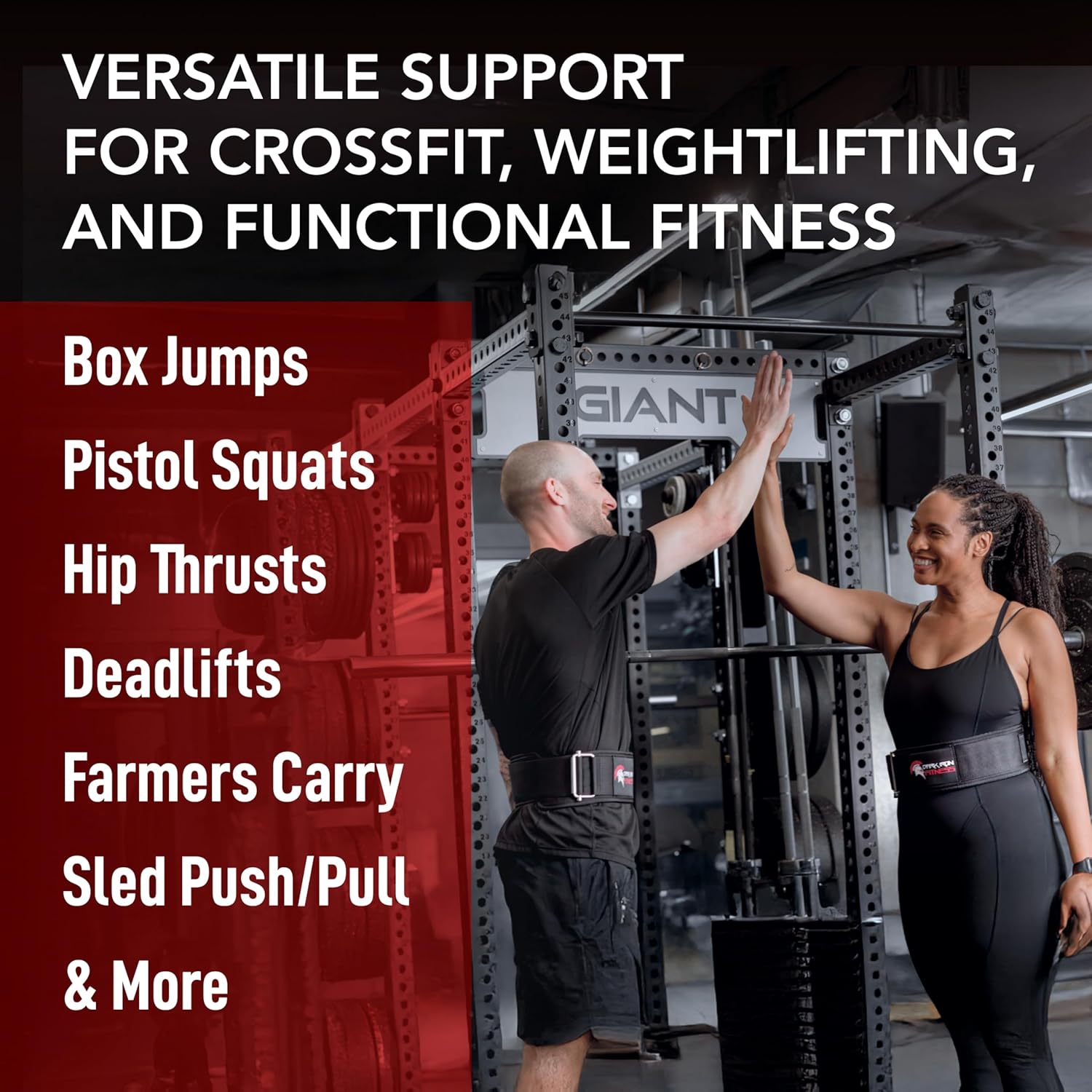 - This 4" wide weight belt is fully adjustable. The double-pronged metal roller buckle system lets you loosen and tighten the belt as needed to maintain optimum support. The self-locking mechanism allows for quick, secure adjustments between sets.