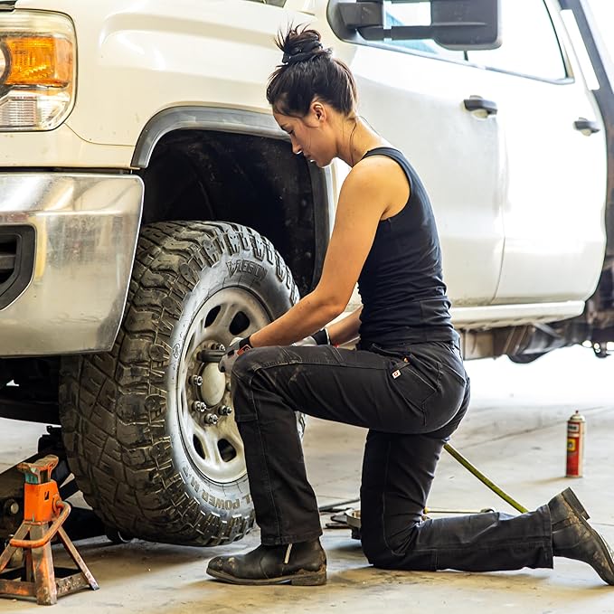 Dovetail Workwear Go To pants for women offer comfort, durability, and versatility with 8 pockets, reinforced knees with pad slots, a tool loop, and soft stretch canvas. Perfect for work or DIY projects, these mid-rise pants keep tools and essentials within reach.