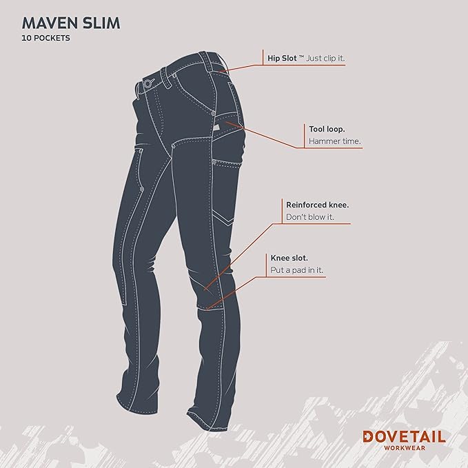 - FOR WOMEN, BY WOMEN: Dovetail Workwear pants are built specifically for women’s bodies. Pocket systems are designed for women’s hands, and for tools to be at the ready.