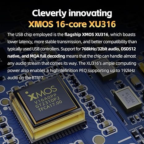 - With lower latency, more stable transmission, and better compatibility than regular USB chips, the device supports 768kHz/32bit, hardware decoding for DSD512, and full MQA decoding. It also features PEQ developed on this platform, allowing adjustments via both the app and web interface, with support for high-definition PEQ at a sampling rate of up to 192kHz.