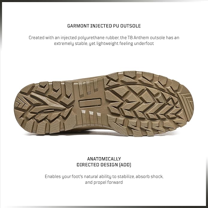 The GARMONT T8 Anthem tactical boots are built for demanding military and tactical use, delivering a balance of durability, comfort, and agility. Made in the USA with a 1.8mm suede leather upper and rugged nylon fabric, these AR 670-1 and Berry compliant boots withstand tough environments while staying lightweight at just 520 grams per half pair (size 9 US). Designed with an Ortholite Ultra footbed for breathable cushioning and Garmont’s Anatomically Directed Design (ADD) for stability and shock absorption, they provide lasting comfort during long operations or extended wear. Featuring a rubber sole for reliable grip and crafted to meet strict Army and Air Force standards, these boots are trusted for intense missions while still offering style, performance, and resilience in every step. For the best fit, ordering a half size down is recommended.