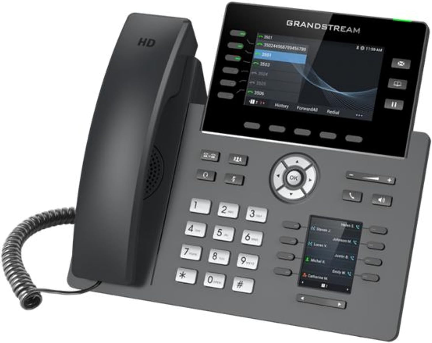 The GRP2616 is a high-end carrier-grade IP phone designed with zero-touch provisioning for mass deployment and easy management. It supports 6 lines and 6 SIP accounts while featuring a sleek design and a suite of next-generation features including integrated Wi-Fi, Bluetooth support, 48 virtual multi-purpose keys (MPKs), dual Gigabit ports and more. This device features a 4.3 inch color LCD screen with swappable face plates to allow for easy logo customization and an additional 2.4 inch display screen. The GRP series includes carrier-grade security features to provide enterprise-level security, including secure boot, dual firmware images and encrypted data storage. For cloud provisioning and centralized management, the GRP2616 is supported by Grandstream’s Device Management System (GDMS), which provides a centralized interface to configure, provision, manage and monitor deployments of Grandstream endpoints. Built for the needs of busy desktop workers and designed for easy deployment by enterprises, service providers and other high-volume markets, the GRP2616 offers an easy-to-use and easy-to-deploy voice platform.