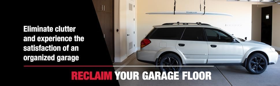 - SAFEST HOIST DESIGN WITH ANTI-DROP SYSTEM: Self-locking cleat grips instantly to prevent accidental release if the rope is dropped. Patented system lifts the load evenly regardless of weight distribution, allowing the load to be stored against the garage ceiling for maximum clearance underneath.