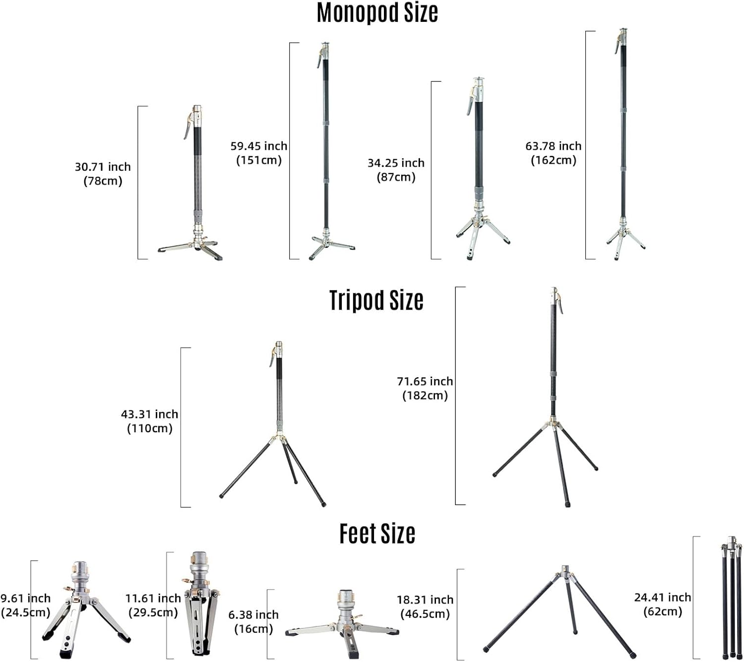 The HARLOWE Carbon Fiber Quick Release Monopod and Fluid Head Kit is a professional system designed for photographers and videographers seeking stable support for cameras and lights in the studio or during travel. The lightweight Carbon Fiber construction makes it highly portable, while the 6 Feet length provides versatility. The kit includes a Fluid Head with Pan Heads for smooth 360° swivel motion, paired with a quick release monopod stand. The system has a robust 22 Pounds weight limit, ensuring it can safely handle heavy cameras and lenses.