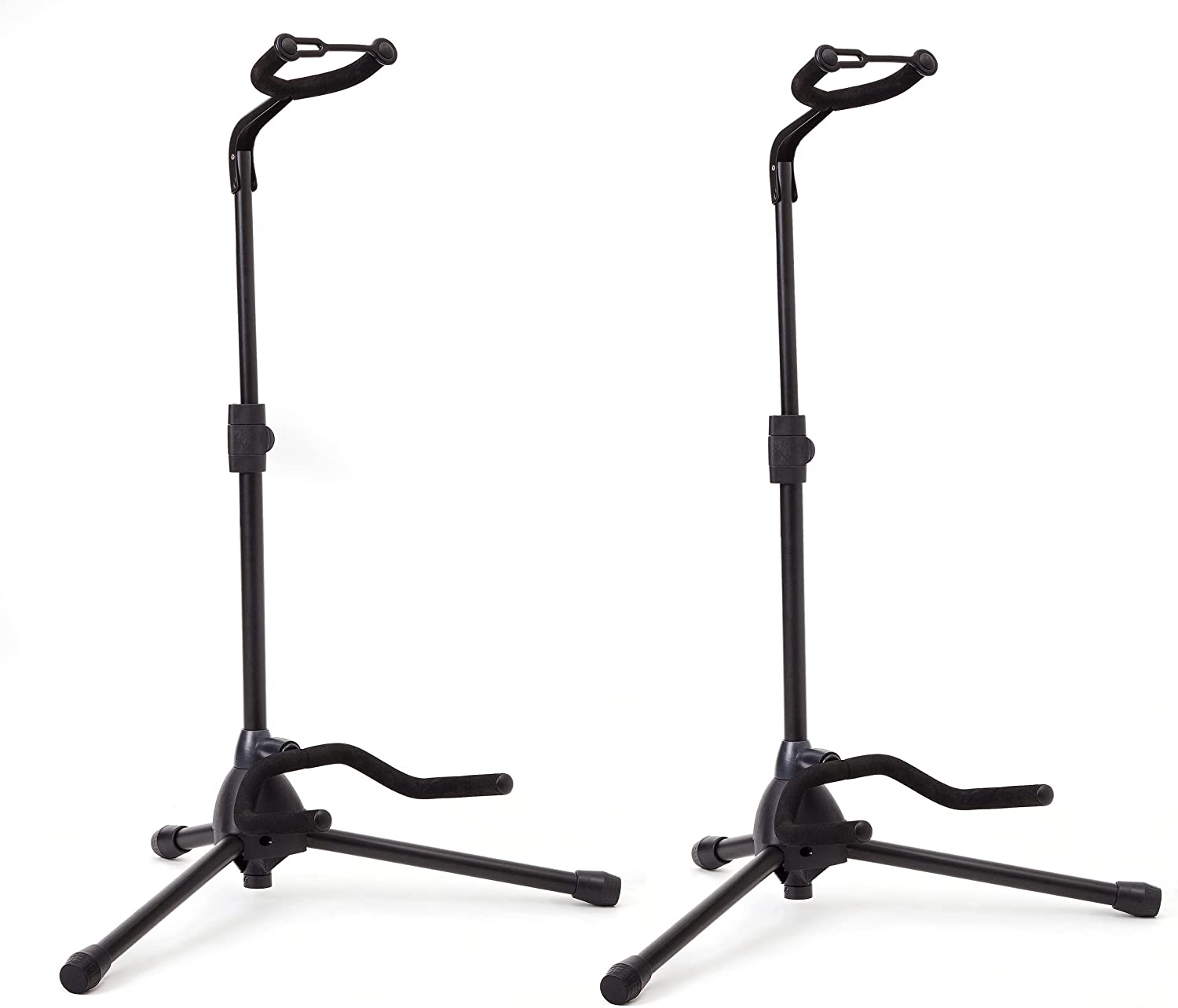 Auto-lock leg housing and non-slip feet keep your guitar stand stable. Yoke and neck rest feature nitrocellulose-safe padding that won’t harm instrument finishes. The height of the Hola! Music Universal Guitar Stand can be adjusted to acoustic, classical, electric, bass guitars, mandolins, banjos, ukuleles and other stringed instruments.