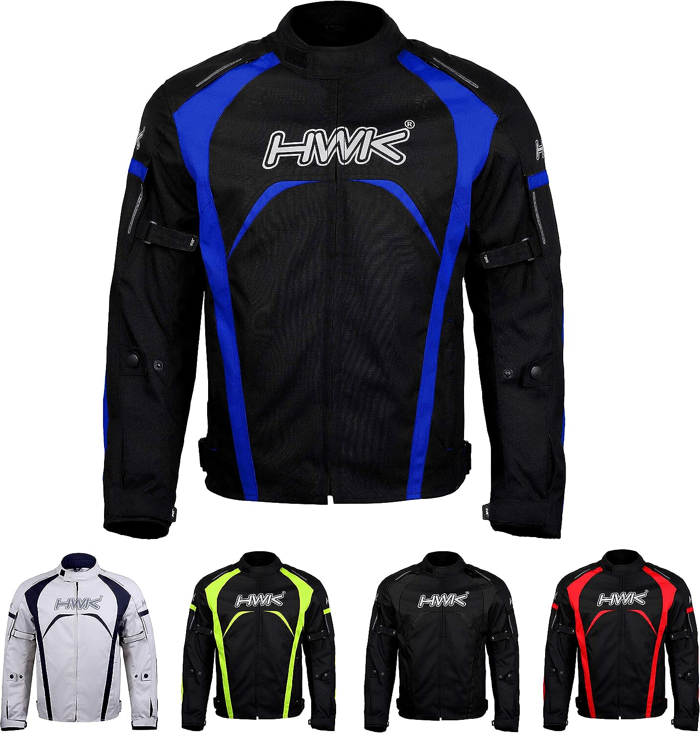 - EXTREMELY VISIBLE REFLECTIVE HWK LOGOS. ALL WEATHER motorcycle jackets mens, 600D CORDURA CONSTRUCTION Textile Motorcycle Racing Jacket , The HWK Motorcycle Jacket is an all season motorbike riding jacket at its best: rugged and strong, yet soft and comfortable to keep you warm during winter, cool during summer and safe all the time.