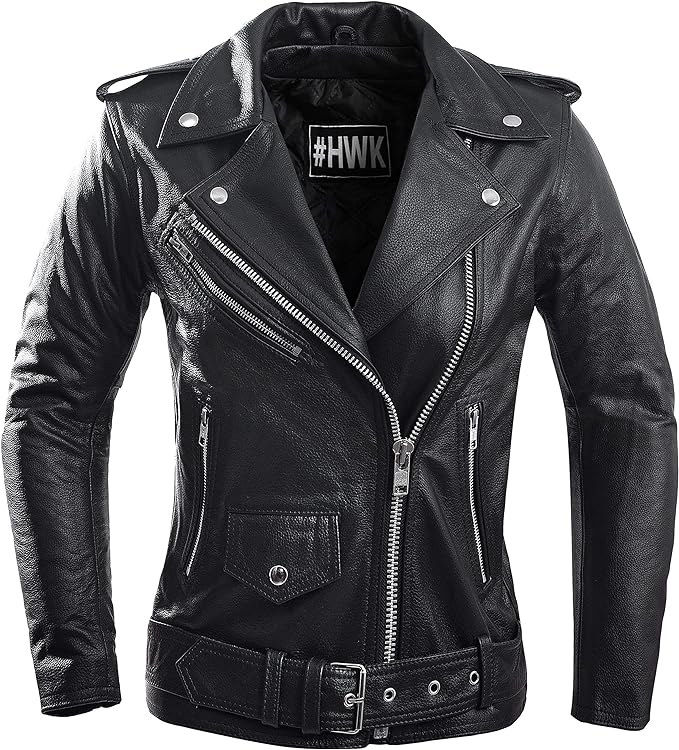 HWK Brando Leather Motorcycle Jacket for Women, Genuine Leather Jacket for Weather & Water Resistant Motorbike Riding