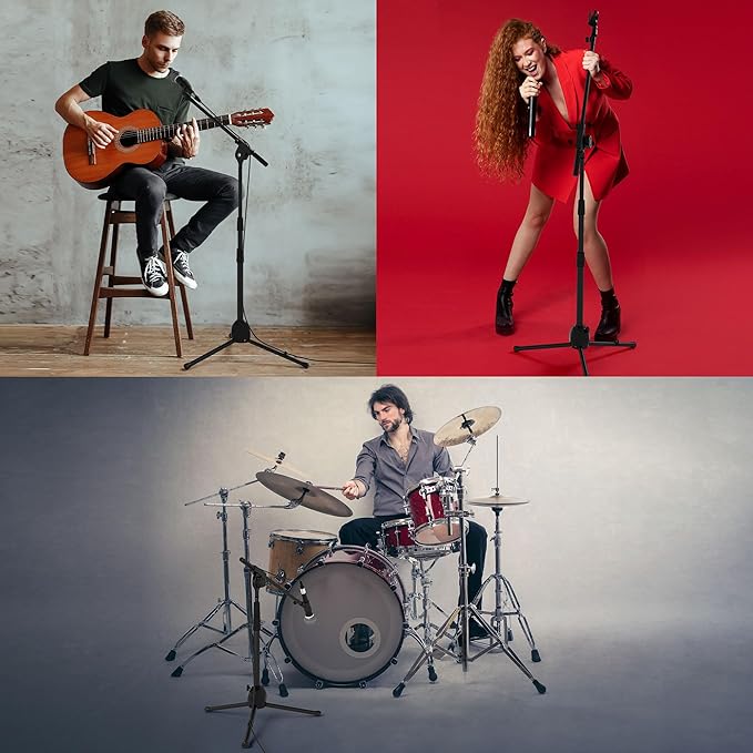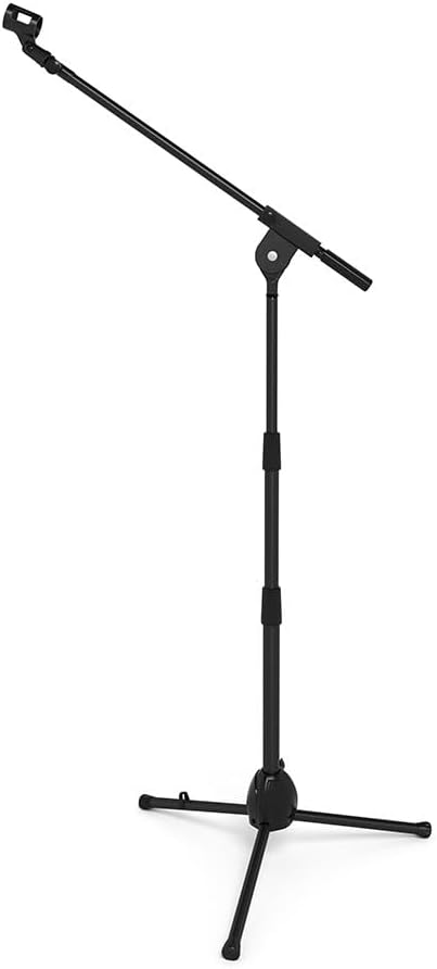 - Offers a boom arm with telescopic extension for versatile microphone placement