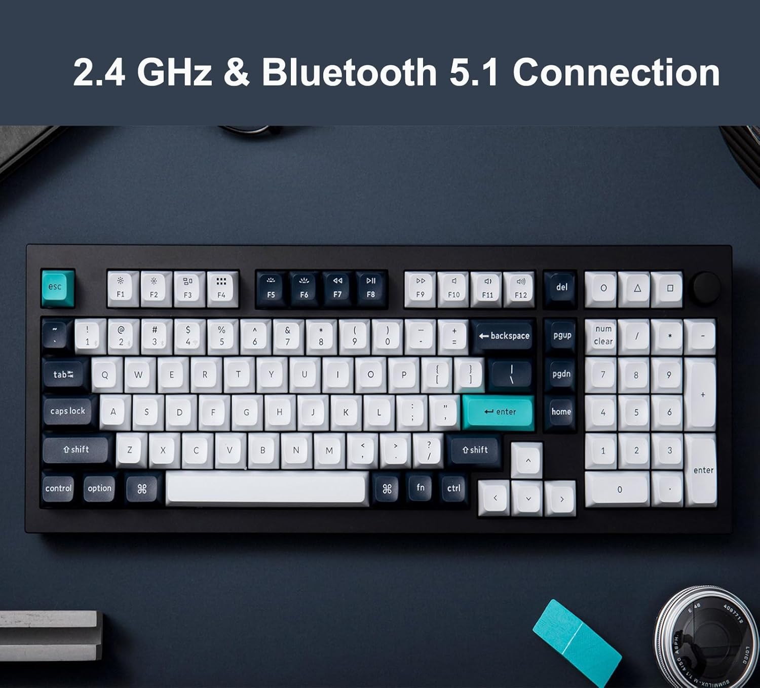 - Keychron Q5 Max Keyboard: a full metal QMK wireless custom mechanical keyboard upgraded with a 2.4 GHz & Bluetooth 5.1 & Wired three mode connection, programmable keys, QMK/VIA support, hot swappable, double-gasket design, PBT keycaps, screw-in stabilizers, red switch, and enhanced acoustic foams, the Keychron Q5 Max promises an unparalleled typing journey that transcends expectations