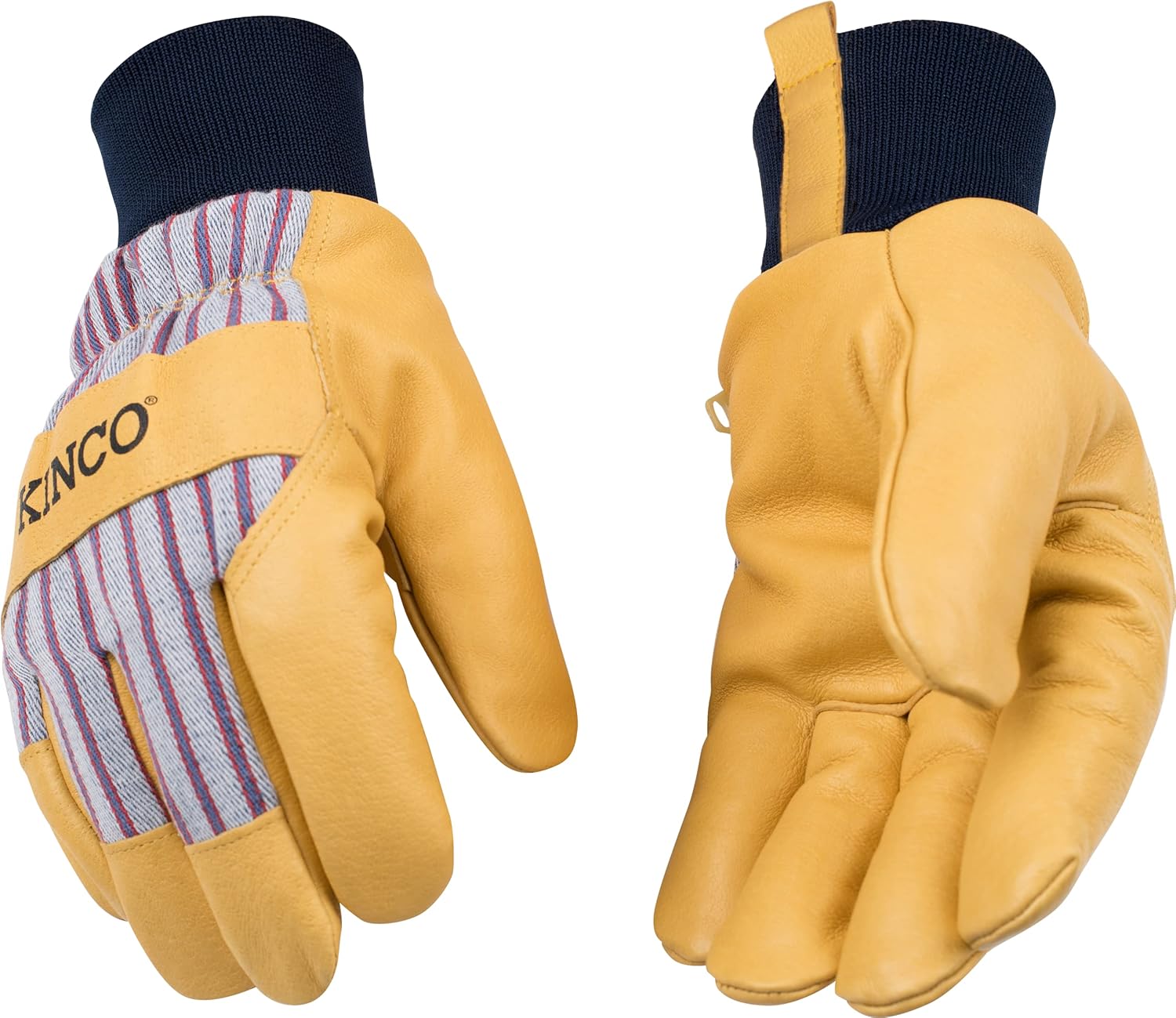 Kinco 1927KW-L-1 Work Gloves, Gold – Durable, breathable, and affordable. The Otto striped canvas back offers lightweight coverage, while premium pigskin leather palms provide exceptional durability and flexibility, even when wet. HeatKeep insulation traps body heat and wicks moisture to keep hands warm and dry. Perfect for blue-collar work, outdoor tasks, or everyday use. Large size, 1-pack, comfortable, and built to last.