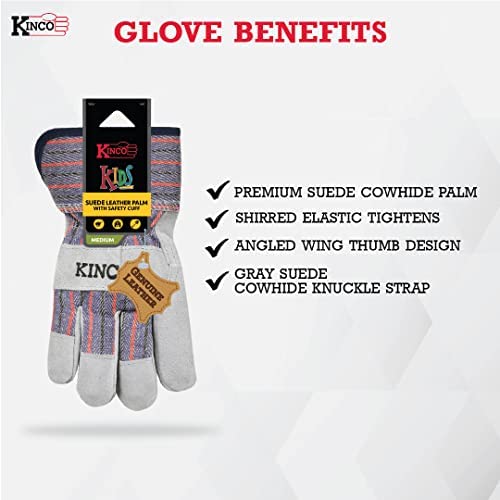 Kinco Suede Cowhide Gloves with Safety Cuff, Gray Suede Cowhide - Small (1 Pack) (Used)