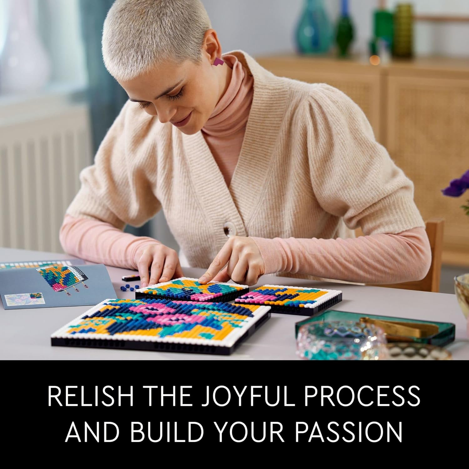 - Includes a white brick-built frame to display your finished artwork on a wall or shelf