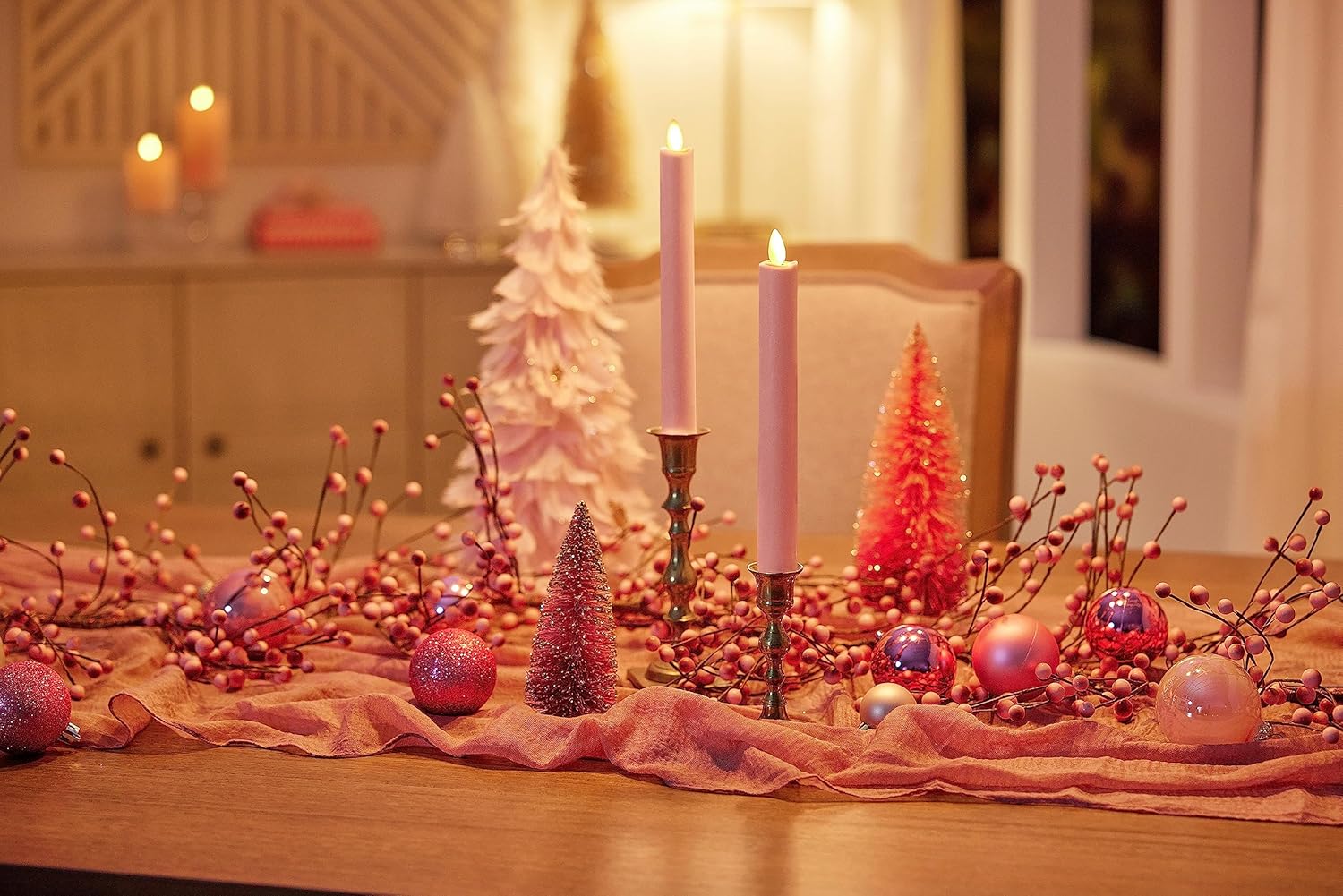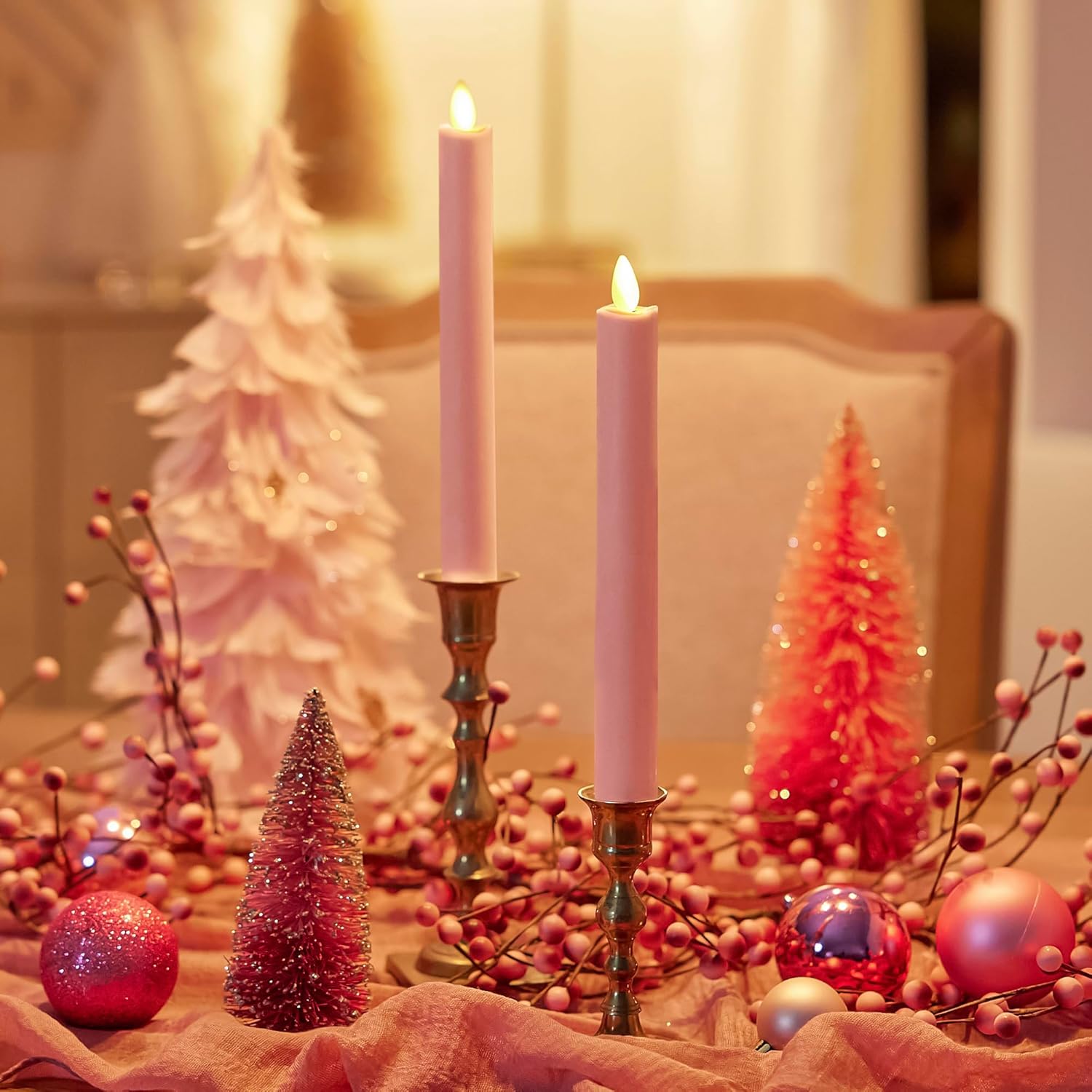 Add elegance to any setting with the Luminara 997636 Flameless LED Taper Candles in. Crafted from real unscented wax with patented Moving Flame technology, these tapers (1" x 9.75") provide a lifelike flickering glow without soot, smoke, or mess. Each candle runs up to 200 hours on 2 AA batteries (not included) and features a convenient 5-hour on/19-hour off timer. Cordless, remote-ready, and energy-efficient, they’re perfect for dining tables, bedrooms, mantels, and more. Safe around kids and pets, these 3V LED tapers arrive in a sturdy gift box—an ideal choice for birthdays, holidays, or everyday ambiance.