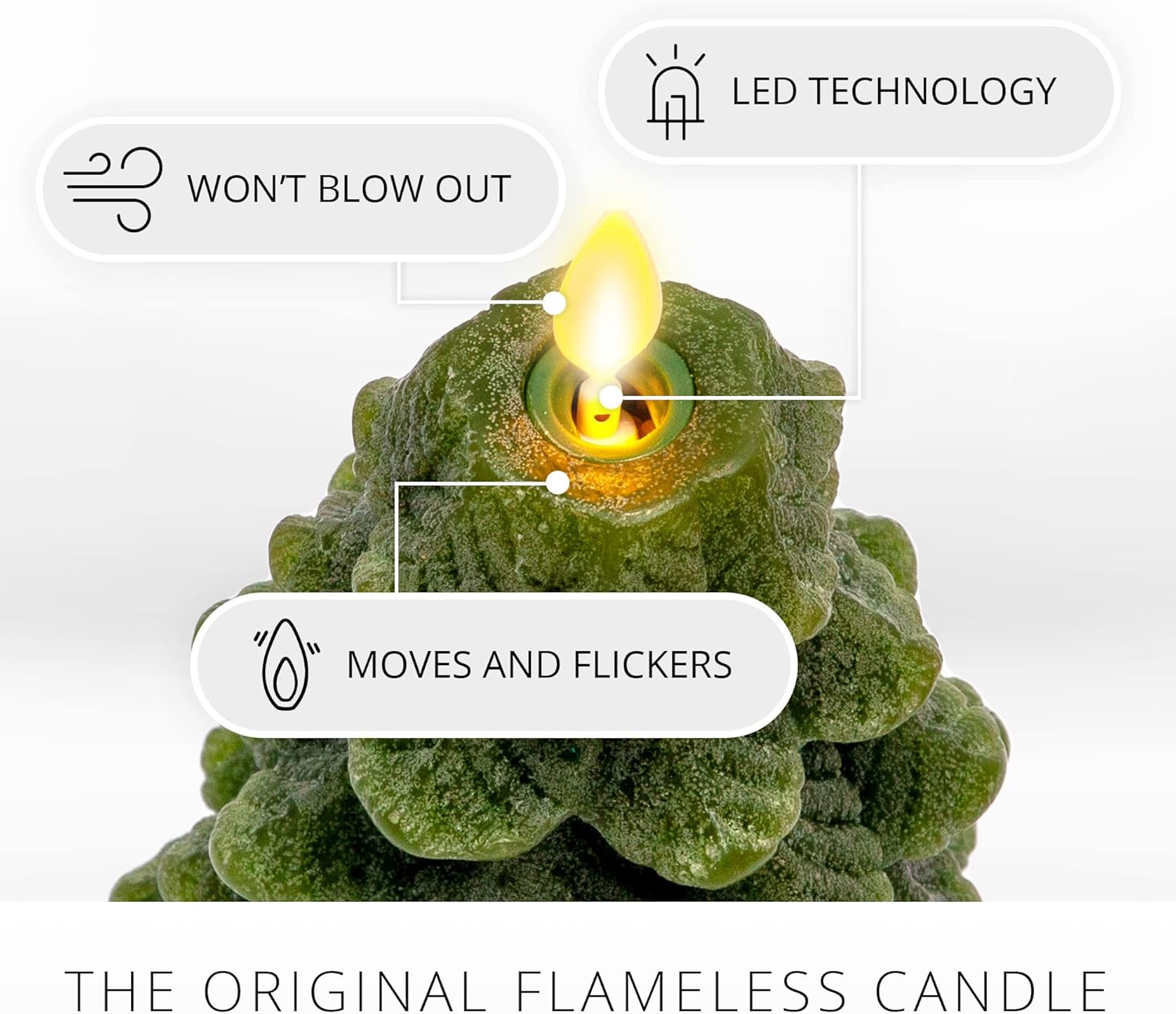 Never have to worry again with Luminara flameless candles since no actual combustion or wax consumption happens. That means no soot or chemicals are released into the air, making them perfect for use indoors. They're perfect for households with small curious children and pets. Get your limited-edition Luminara holiday season flameless candles early. Enjoy tree candles infused with the holiday spirit. Luminara Real Flame-Effect Seasonal Candles are realistic-looking candles creating a serene effect anywhere you want it without risking your family's safety. Moving Flame technology creates a visible and natural simulated flame that dances, flickers, and sways so convincingly like a traditional flame without the mess or worry! Unscented and made from 100% paraffin real wax and can safely go where traditional flame candles can’t.
