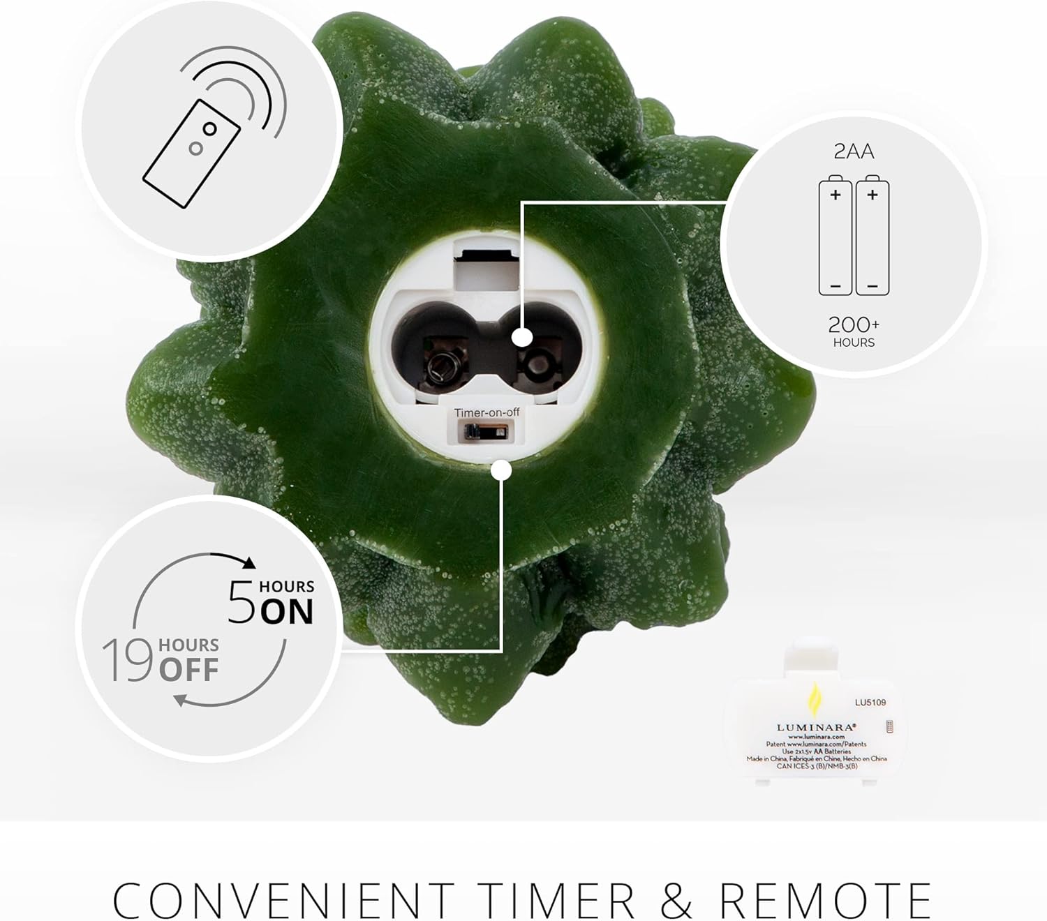 - Safe and Convenient: Ensures safety without compromising on ambiance, perfect for homes with kids, pets, or sensitive areas. Runs on 2 AA batteries (sold separately), providing up to 200 hours of illumination. Includes a built-in timer function (5 hours on/19 hours off).