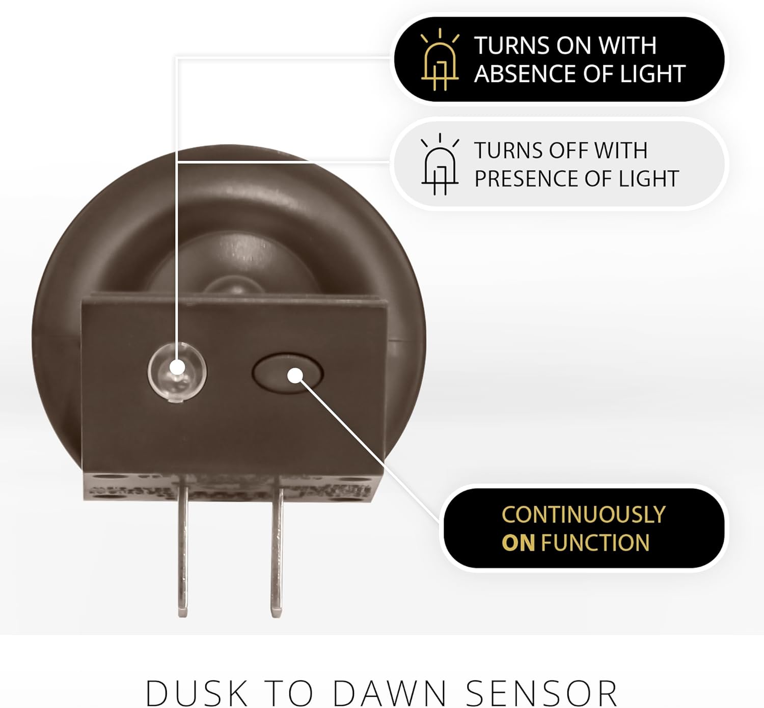 Bring warmth and safety to your evenings with the Luminara Flameless Candle Nightlight, featuring patented Real-Flame Effect technology that creates a soft, flickering glow without heat, smoke, or mess. Designed with a built-in Dusk-to-Dawn sensor, it automatically turns on in low light and off when brightness returns, while also offering manual on/off control. Made from durable plastic and powered by a standard outlet—no batteries required—it’s safe for homes with children and pets. Compact and efficient, the nightlight covers only the top outlet, leaving the bottom free for use, and its quiet flame adds ambiance without distraction.