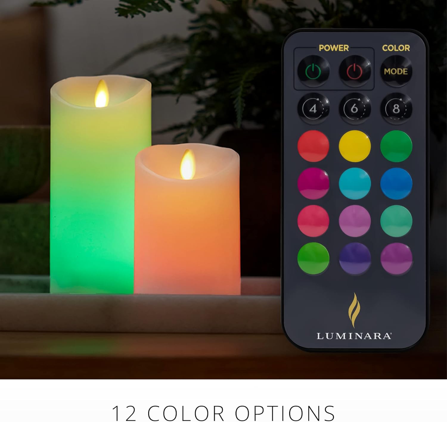 Never have to worry again with Luminara flameless candles since no actual combustion or wax consumption happens. That means no soot or chemicals are released into the air, making them perfect for use indoors. They're perfect for households with small, curious children and pets. Gorgeous color change; slow and subtle! Get your limited-edition Luminara Color Changing Flameless Candle Pillars. The real Flame-Effect technology highlights the scalloped top and gradient shades. Keep this candle white if you prefer a natural look. Moving Flame technology creates a visible and natural simulated flame that dances, flickers, and sways so convincingly like a traditional flame without the mess or worry! Unscented and made from 100% paraffin real wax and can securely go where traditional flame candles can’t.