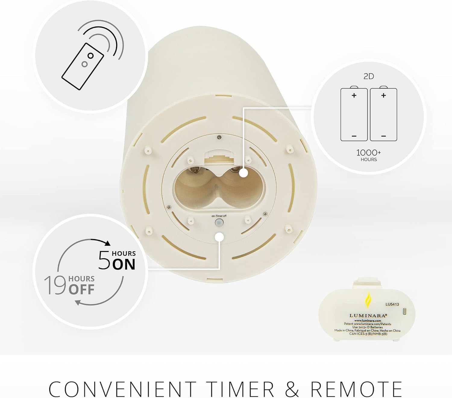 - Safe and Convenient - Perfect for homes with kids, pets, or sensitive areas like bookshelves, Luminara flameless candles ensure safety without compromising on ambiance. Each candle runs on 2 AA batteries (sold separately), providing up to 200 hours of illumination. The built-in timer function allows for 5 hours of light, automatically turning off for 19 hours, ensuring effortless, long-lasting beauty.