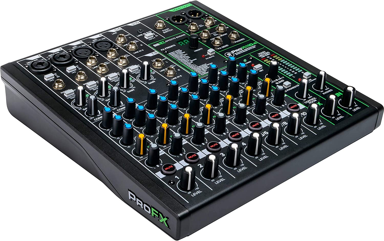 The Mackie ProFX10v3 channel professional effects mixer with USB is the ultimate affordable solution for live sound, home recording, and content creators. Now with our renowned Onyx mic preamps that offer 60dB of headroom, everything From gain hungry mics to guitars will sound better than ever, and you can keep it all in check with simple single-knob compression. The new gig FX effects engine offers 24 built-in FX for even more options for adding the finishing touch. Record your tracks in 24-bit/192kHz quality with 2x4 USB I/O Plus zero-latency hardware monitoring for easy overdubs. Both Pro Tools first and waveform OEM recording software/plugin packages are included.