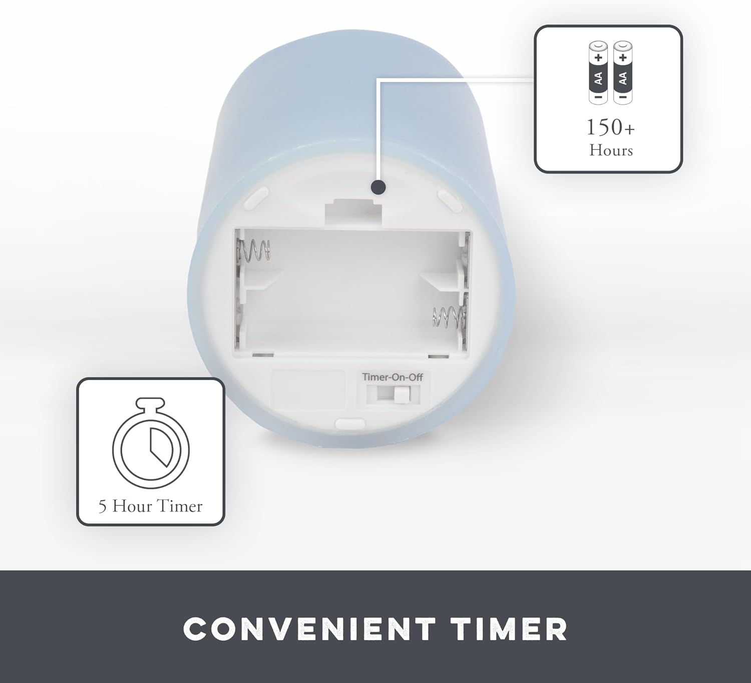 - The candles take 2 AA batteries and provide 150 hours of runtime. Batteries are not included. When using the timer function, the candle will light up for 5 hours, and then automatically shut off for 19 hours. With proper care, these flameless candles will provide years of lovely, safe illumination.