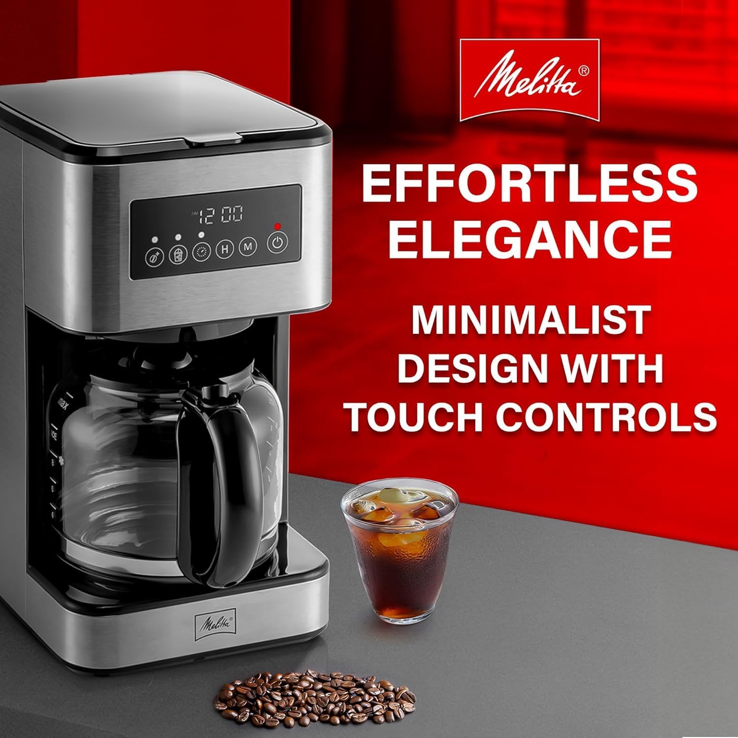 Brew your perfect cup with the Melitta Aroma Tocco Plus Coffee Maker, model MCM011PULAB0. This 12-cup drip machine features Aroma Tailoring Technology to customize brew strength, a dedicated iced coffee function for full-bodied cold brews, and pause & serve for quick cups. The sleek design includes an LCD touchscreen for easy scheduling and settings. The 12-cup calibrated glass carafe keeps coffee hot with a 2-hour keep-warm function and auto shut-off for safety. Includes a bonus 5-pack of cone filters. With 1000W power, stainless steel/black finish, and compact size (10.31" x 7.36" x 13.74"), it blends performance with style.