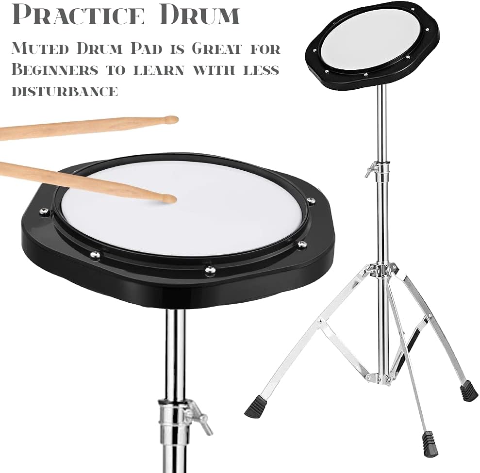 - 8” PRACTICE PAD: This drum pad is designed for muted practice. The pracitce pad has the feel of a drum kit, and is suitable for beginners to learn the drumming form without disturbing those around.