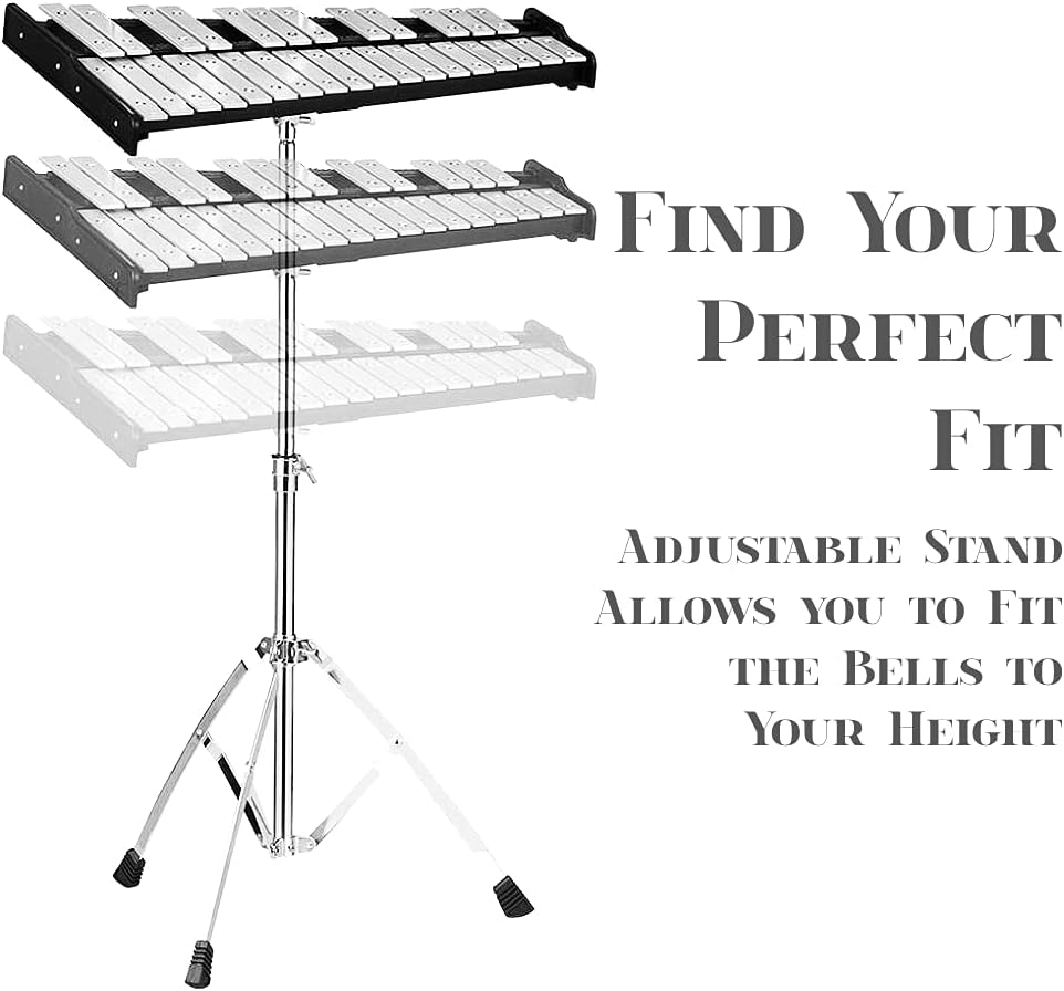 - SIZE: This glockenspiel is 24 inches long and has an adjustable stand that can span about 23 - 38 inches. It fits children and adults, and you can adjust to your height and ideal comfort.