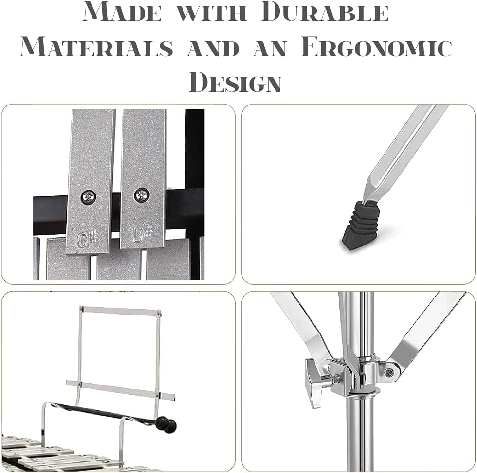 - TRANSPORT & STORAGE: This glockenspiel kit comes with an backpack style carrying bag that organizes the glockenspiel, the drum pad, the stand, the mallets, and spare parts for easy transportation and storage.