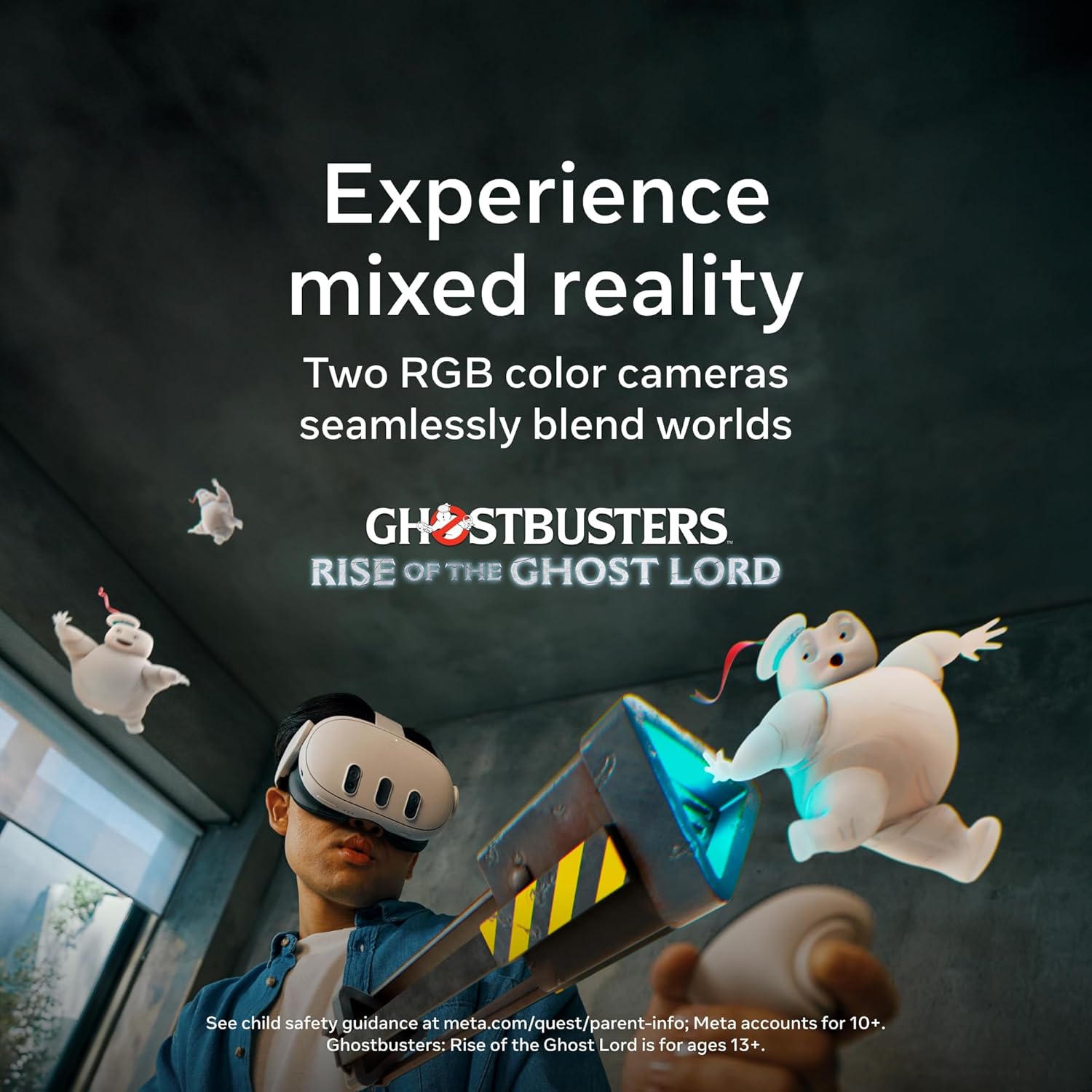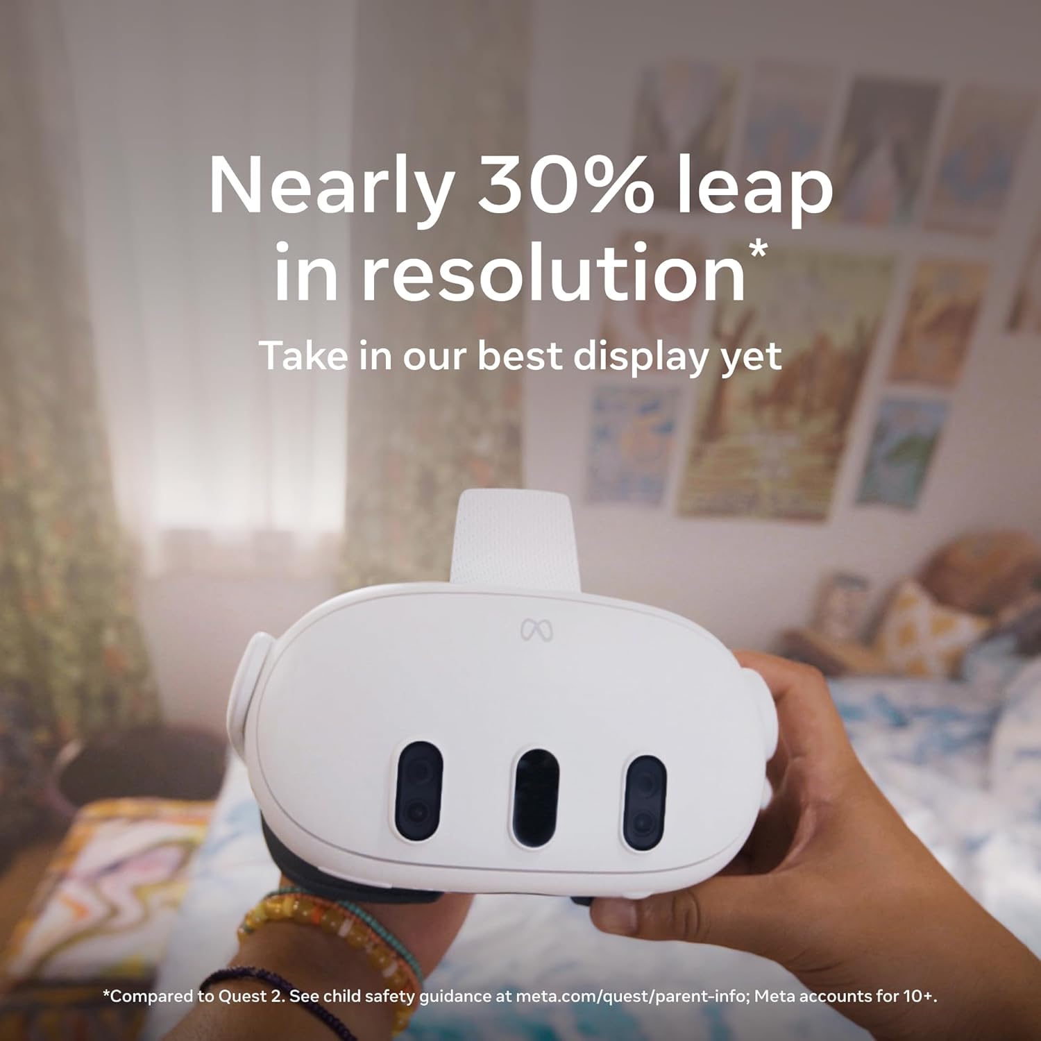 Get the ultimate mixed reality experience. With Meta Quest 3, you can stream shows on giant, vibrant screens that you can adjust to the perfect size—all while you see the world around you. Dive into full immersion, where you’ll feel like you’re actually inside your favorite games, thanks to brilliant 4K resolution and rich spatial audio. With Infinite Display, enjoy the widest field of view of any Quest for the most immersive experiences yet. The slim, wireless design provides premium comfort, allowing you to move freely in workouts, complex games, and dynamic environments. Experience the power and premium comfort of Meta Quest 3.