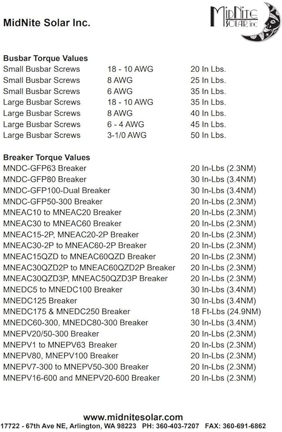 - Breaker Torque Value: 20 In-Lbs (2.3NM)