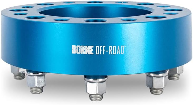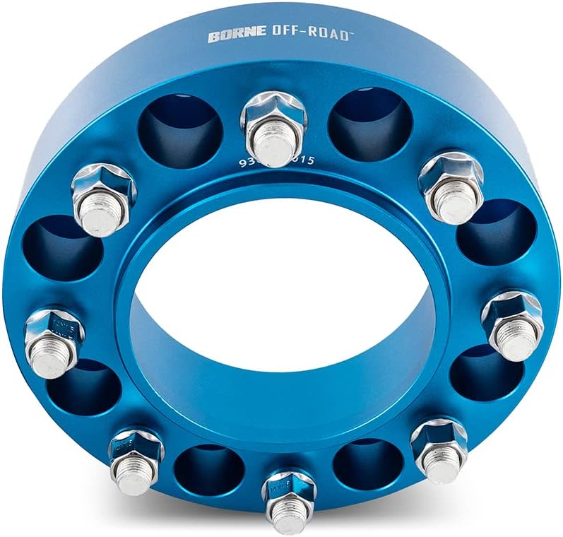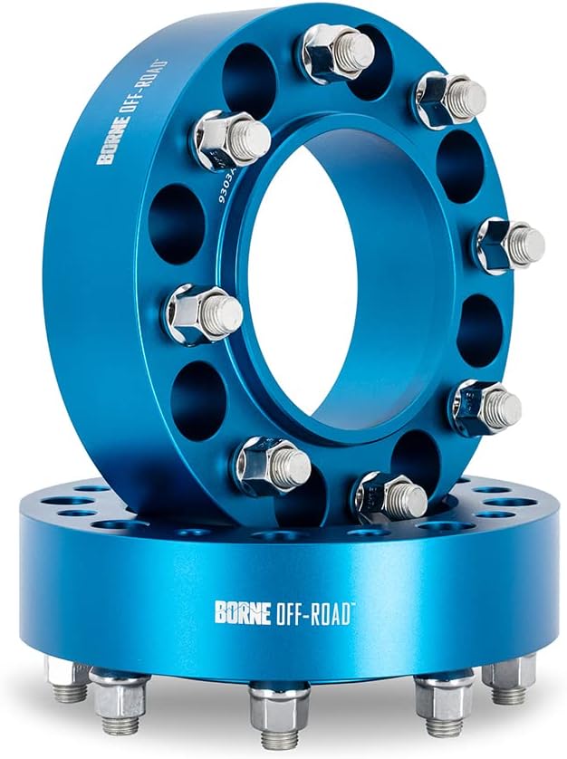 Wheel spacers are a great way to create brake clearance, add track width, prevent tire rub, and provide ideal wheel fitment on your vehicle. To support our Jeep and truck enthusiasts, Borne Off-Road now offers a complete catalog of wheel spacers for a variety of common thread patterns, center bores, and thicknesses. Quality material selection, precise engineering, and meticulous manufacturing are critical elements to creating our incredibly robust products, and our wheel spacers are no different. Each spacer is forged from 6061-T6 aluminum. This material offers a perfect blend of strength and lightness, both of which are extremely vital in this application. Our spacers feature grade-12.9 steel studs and lug nuts, ensuring a safe and secure installation. Borne Off-Road’s hub-centric design provides a direct extension of the axle hub, ensuring precise wheel fitment, reduced load on the hardware, and a safe and smooth driving experience. Borne Off-Road wheel spacers feature a black or blue anodized finish to ensure protection against corrosion. Each kit contains two wheel spacers with pre-installed studs and all hardware necessary for installation.