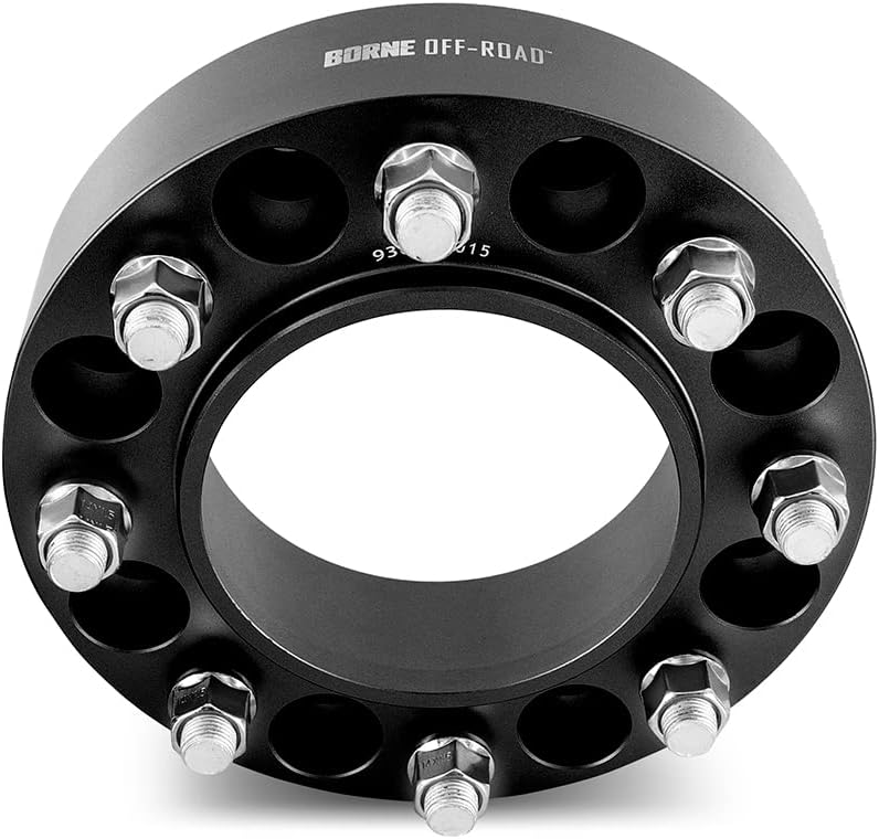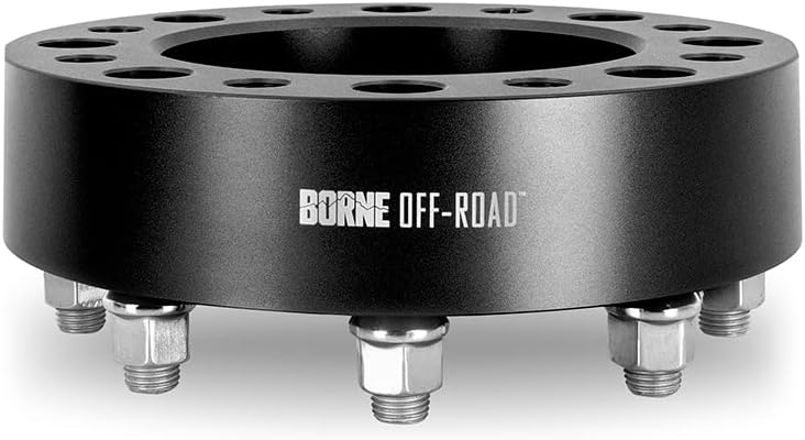 Wheel spacers are a great way to create brake clearance, add track width, prevent tire rub, and provide ideal wheel fitment on your vehicle. Borne Off-Road now offers a complete catalog of wheel spacers for a variety of common thread patterns, center bores, and thicknesses.----Quality material selection, precise engineering, and meticulous manufacturing are critical elements to creating our incredibly robust products, and our wheel spacers are no different. Each spacer is forged from 6061-T6 aluminum. This material offers a perfect blend of strength and lightness, both are extremely vital in this application. Our spacers feature grade-12.9 steel studs and lug nuts, ensuring a safe and secure installation. Borne Off-Road’s hub-centric design provides a direct extension of the axle hub for precise wheel fitment, reduced load on the hardware, and ensures safe and smooth driving.----Borne Off-Road wheel spacers feature a black or blue anodized finish to ensure protection against corrosion. Each kit contains two wheel spacers with pre-installed studs and all hardware necessary for installation.