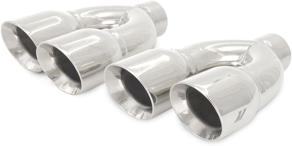 Your exhaust is the most multi-faceted system of your vehicle. It not only has to perform well, but it must also sound and look good. That makes choosing the right exhaust tip a tricky task, but luckily, Mishimoto offers a wide variety of exhaust tips that will put the cherry on top of your build.----Our dual-Y exhaust tips are constructed from 304 stainless-steel and feature slashed tips with staggered 3.5-inch outlets for an aggressive look. This kit includes two tips to fit dual exhaust. We offer these tips in a sleek polished finish to match almost any aesthetic. The double-wall design gives these tips a clean and high-end look, fitting of even the classiest car or truck. Installation of Mishimoto exhaust tips is easy with our slip-fit design that slides over existing 2.5-inch piping and the included clamps lock your tips in place. Like all our exhaust and performance parts, these Mishimoto dual-Y stainless-steel exhaust tips are backed.
