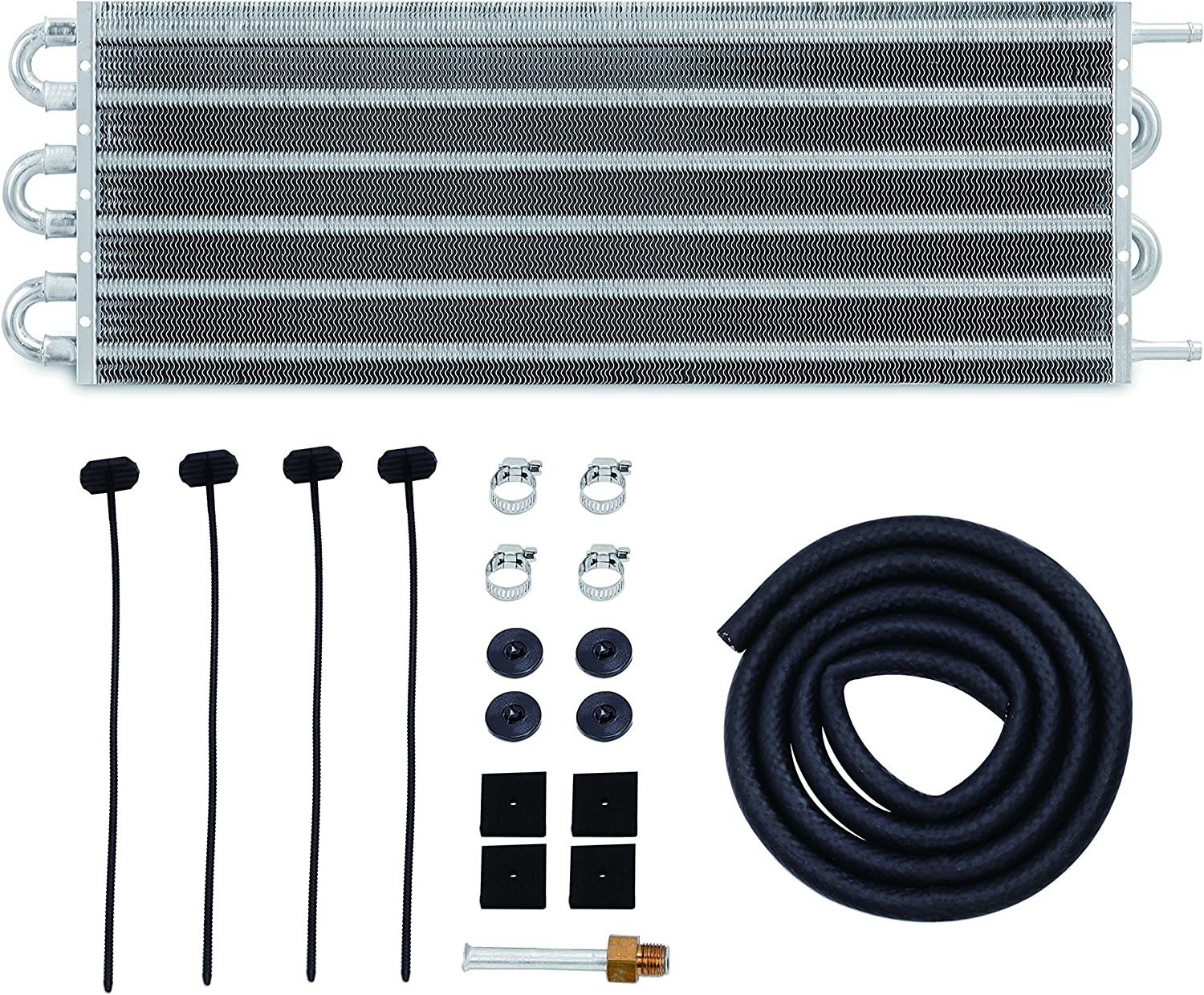 Keep high fluid temperatures at bay with a Mishimoto Universal Transmission Fluid Cooler! This cooler features a highly efficient 20" x 7.5" x 0.75" tube-and-fin core that promotes dramatic temperature drops. Mishimoto universal fluid coolers are applicable for use with transmission fluid, engine oil, power steering fluid, and a variety of other automotive fluids. This ready-to-install kit includes 5' of durable rubber hose, a universal mounting kit, and four worm-gear clamps for secure connections. The universal mounting kit provides installation flexibility to fit any application. This cooler utilizes 3/8" push-on fittings, perfect for use as a replacement for a damaged factory cooler, or as an upgrade to a vehicle not equipped with a liquid-to-air cooler.