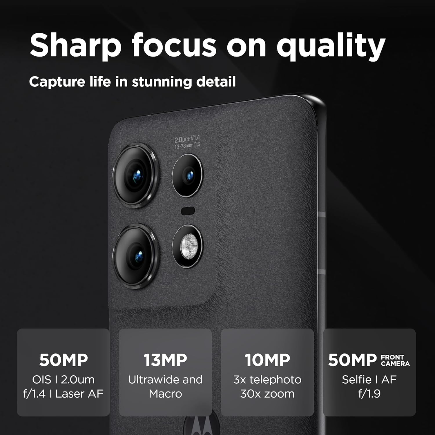 The Motorola Edge 50 Pro 5G delivers flagship-level performance with a Snapdragon 7 Gen 3 processor, 12GB RAM, and a stunning 6.7" Super HD pOLED display featuring HDR10+, 10-bit color, DCI-P3 coverage, and a smooth 144Hz refresh rate. This globally unlocked device works with all carriers outside the USA, but within the USA it is compatible ONLY with T-Mobile, Metro, Mint, Tello, and other T-Mobile-based networks. Its advanced triple-camera system includes a 50 MP main sensor with OIS, a 13 MP ultrawide/macro lens, and a 10 MP telephoto lens with 3x optical zoom, plus a 50 MP autofocus front camera for exceptional photo and video quality. With IP68 water protection, Wi-Fi 6E, dual nano SIM support, 512GB storage, a 4500 mAh battery with fast charging, and security features like an in-display fingerprint reader, face unlock, and ThinkShield Moto Secure, the Edge 50 Pro is built for power, creativity, and durability. This model includes a phone case and power adapter.