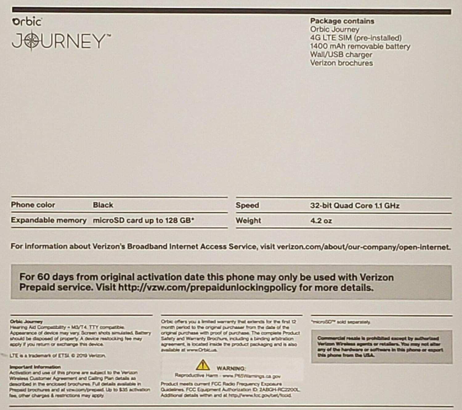 The Orbic Journey V (RC2200L) Flip Phone is a reliable basic device running on Android 11.0, optimized for the Verizon Wireless 4G LTE network. Powered by a Snapdragon processor at 1.1 GHz, this single-SIM phone offers 8 GB of storage and 1 GB of RAM, prioritizing core phone functions. It features a compact 2.8-Inch LCD display (320 x 240 resolution) and a comfortable button interface. Capture moments with the 8 MP Front Camera (with LED flash and 720p video resolution) and enjoy up to 10 Days of Phone Talk Time thanks to the 1400 mAh Lithium-Ion battery. Designed for simplicity, it also includes a 3.5 mm Headphones Jack and is noted for its Sustainable material features, making it a functional, basic choice for the everyday user.