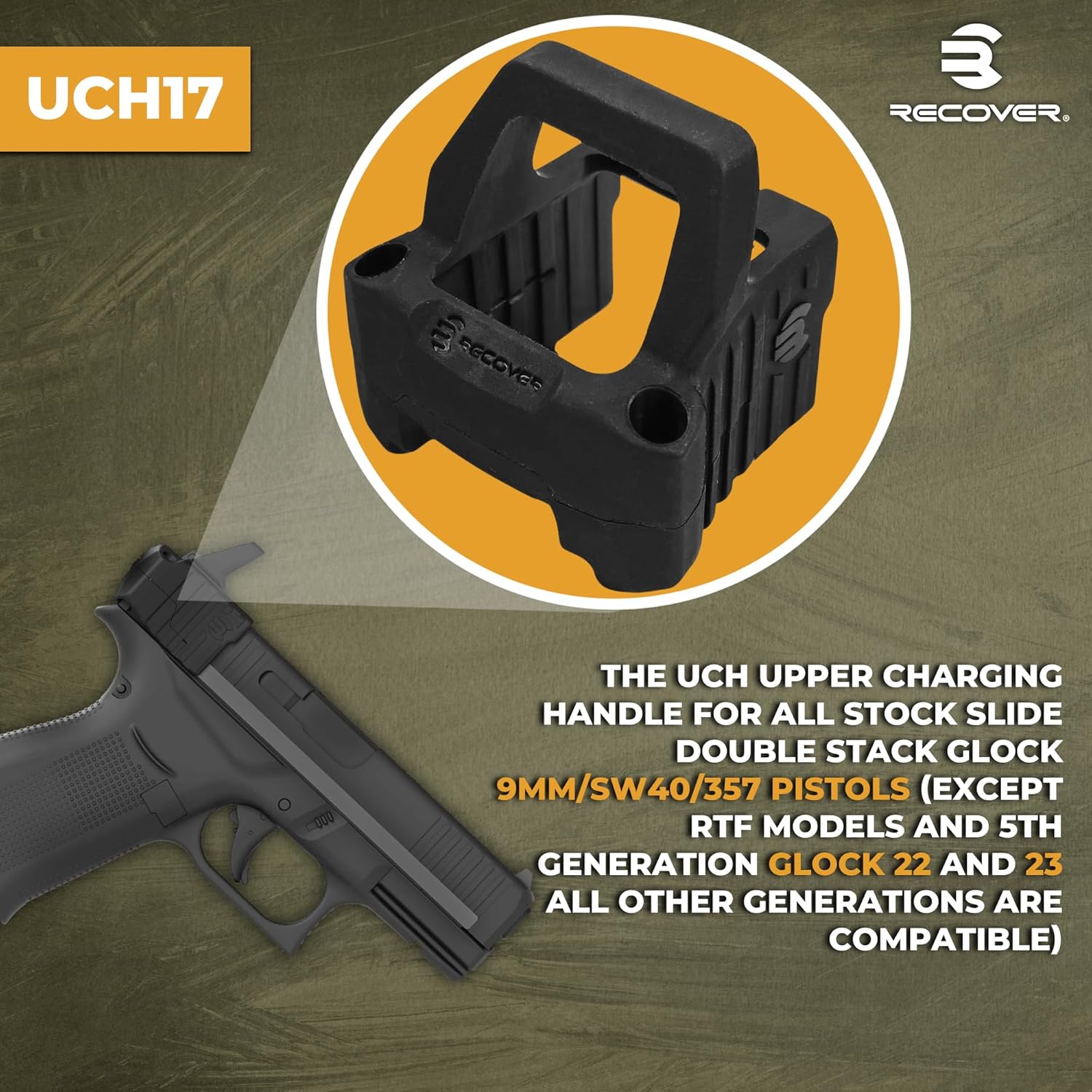 Upgrade your firearm handling with the Recover Tactical Slide Racking Assist, designed for a more ergonomic and effortless charge. Compatible with multiple Glock and Smith & Wesson models (please select the correct version at checkout). This patented assist installs in minutes with no gunsmithing or permanent modifications required. Made from durable glass-reinforced polymer, it won’t damage your firearm and features a snag-free design that won’t catch on clothing or holsters. Provides a secure grip for easier slide operation while maintaining your firearm’s sleek profile. Not compatible with Smith & Wesson EZ models or slide-mounted optics.