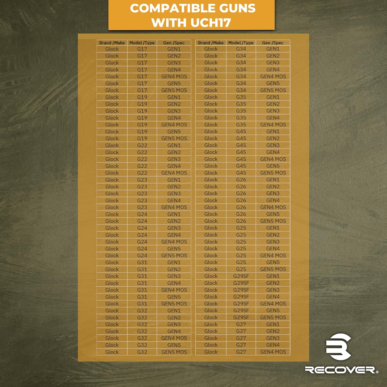- Compatible with all generations of Glock 17/19/24/25/26/27/29SF/31/32/34/- -35/45/47 and Glock 22/23 Gens 1-4 (Slide Serrations must be straight)
