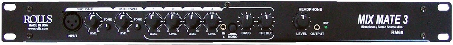 Rolls RM69 MixMate 4 Stereo Inputs 3 Mic/Source RCA XLR Output Phantom Mixer (Used)
