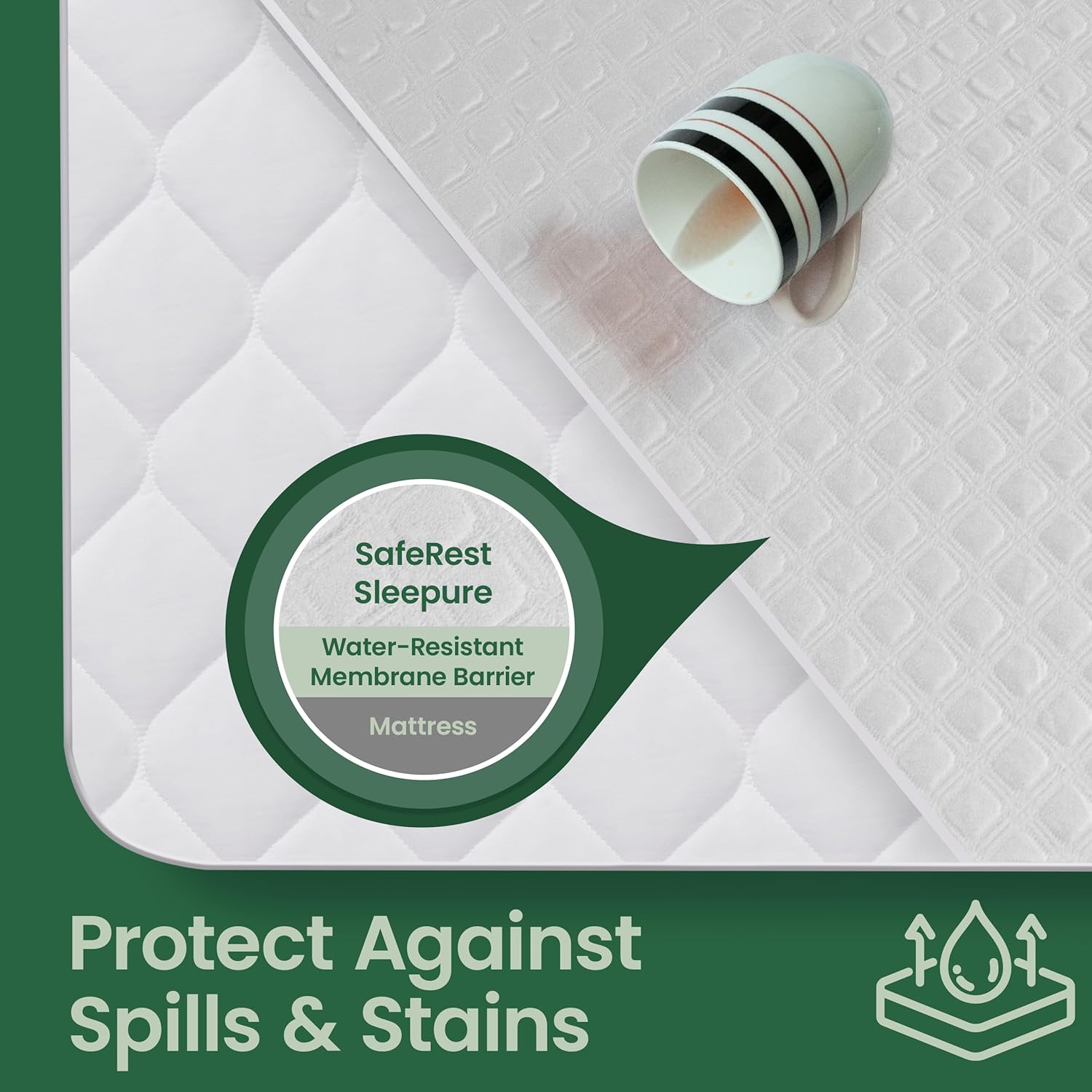 SafeRest Sleepure Full Size Waterproof Mattress Cover, Stretchable Pocket, White (New)