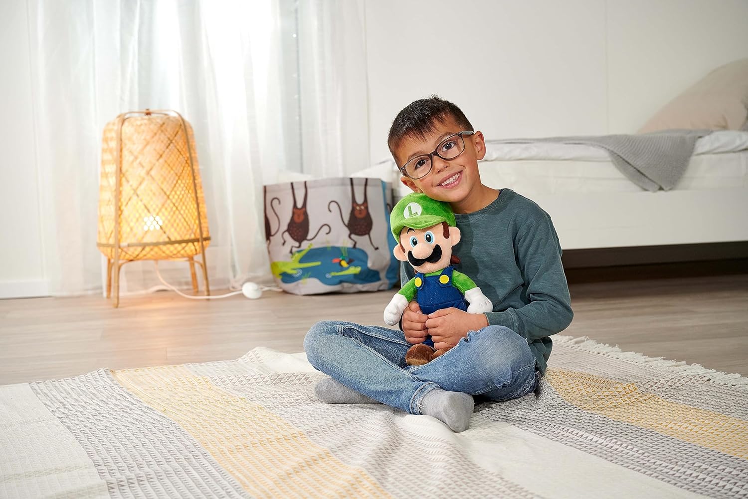 - The Super Mario World plushies have been developed in conjunction with Simba Toys to delight children and adults of any age with high-quality and child-friendly designs. Each Super Mario plushie stands at 30cm tall and is created with soft and cuddly plush material that is suitable and safe for all ages, young or old! If you love Super Mario, Luigi is the perfect cuddle buddy for you.