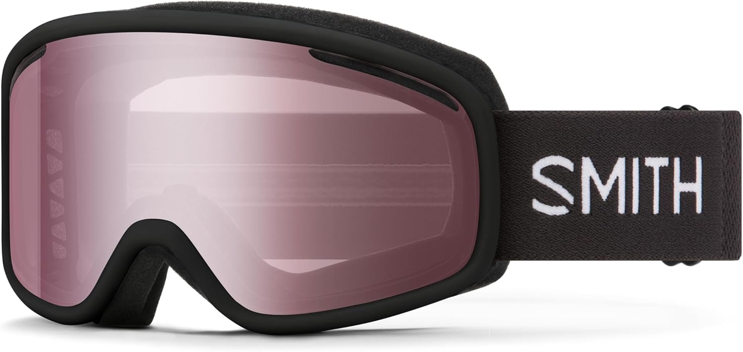 Hit the slopes in style and clarity with the SMITH Vogue Snow Sport Goggle (Style #M00759). Originating from Sun Valley, ID, SMITH brings 50 years of innovation to this modern classic, specifically designed with frames to fit a smaller face (though listed as One Size) for women, while remaining a Unisex fit. The goggle features a durable, rimless design and comes in Black with an Ignitor Mirror lens.Experience superior vision thanks to the cylindrical Carbonic-x lens, which offers excellent impact resistance, UV protection, and built-in Fog-X anti-fog treatment. For maximum comfort and safety, the Vogue is designed for ultimate integration with SMITH helmets, ensuring seamless fit and fog-free performance. It's built on a running shoe platform ethos for all-day comfort and features a multi-lug tread for quiet footing. The lightweight design, weighing only 0.17 Kilograms, is ideal for Snowboarding and is also Compatible with Snowmobiles. Additional lenses for sunny or variable conditions are sold separately.
